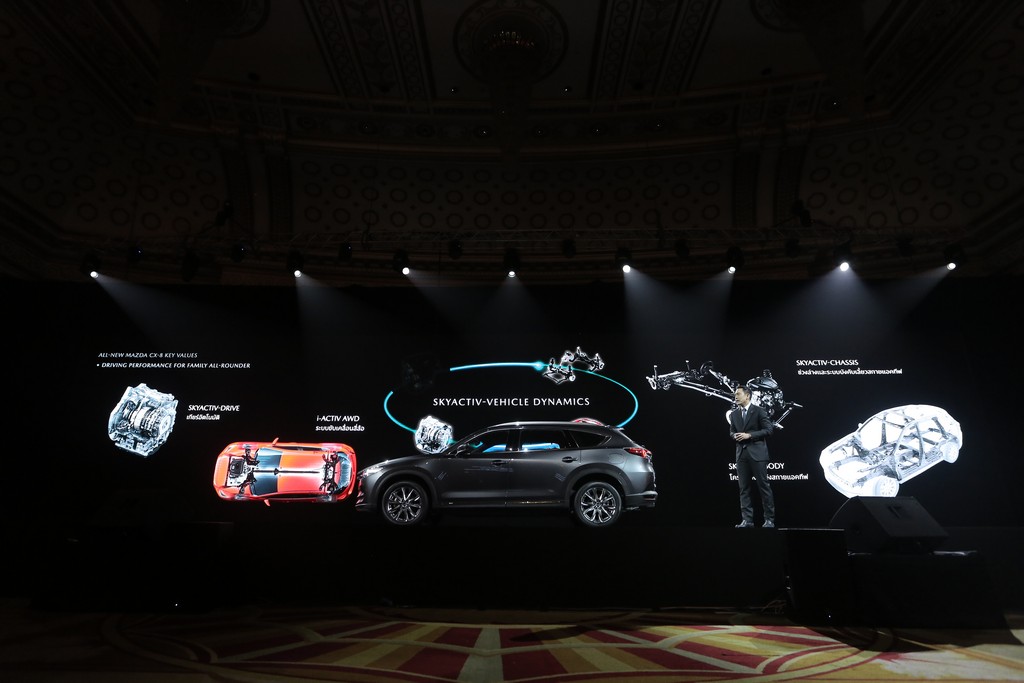 มาสด้า เซลส์ ประเทศไทย ร่วมกับ มาสด้า มอเตอร์ คอร์ปอเรชั่น ประเทศญี่ปุ่น จัดงานเปิดตัวแนะนำ All-New Mazda CX-8 ครอสโอเวอร์อเนกประสงค์เอสยูวีระดับพรีเมียมแบบ 3 แถว 7 ที่นั่ง และ 6 ที่นั่ง พร้อมเปิดประสบการณ์การขับขี่อันล้ำค่ากับช่วงเวลาที่ยิ่งใหญ่สำหรับคุณและคนที่คุณรัก ถือเป็น Crossover SUV ที่สะท้อนภาพลักษณ์แห่งความภูมิฐาน สง่างาม และความสมบูรณ์แบบ ตอบโจทย์ความต้องการของทุกคนในครอบครัว มาพร้อมแนวคิด “The Precious Moment for All” ทุกช่วงเวลา…มีค่าไม่สิ้นสุด เป็นยนตรกรรมที่สร้างแรงบันดาลใจให้ออกไปใช้ชีวิตได้อย่างไร้ขอบเขตและไม่มีที่สิ้นสุด