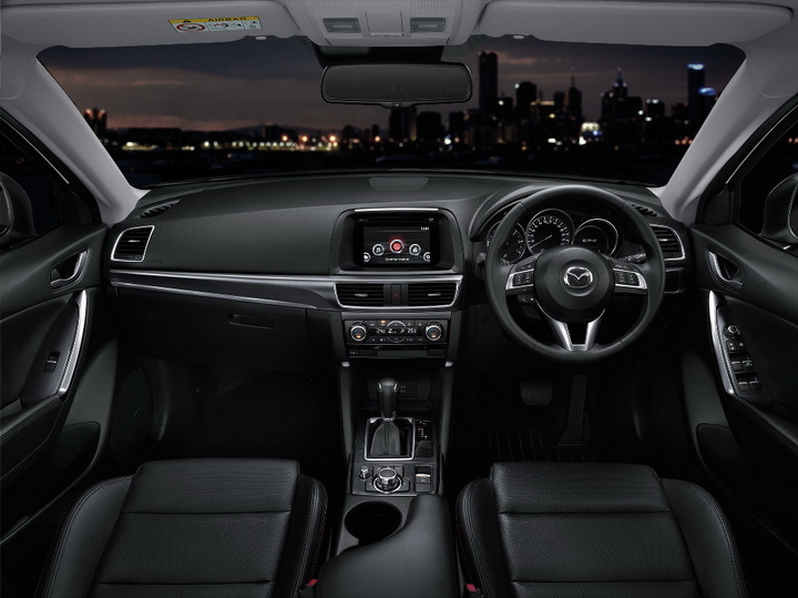 ด้วยแผงคอนโซลหน้า คอนโซลกลาง และแผงประตู ที่ถูกออกแบบใหม่ เน้นการใช้สีเงินวาว และสีเงินซาตินโครม ให้ผู้ขับขี่ และผู้โดยสาร สัมผัสกับการใช้ชีวิตบนท้องถนนอย่างมีคลาส และยังมีวัสดุหุ้มพวงมาลัย มาพร้อมกับแผงหน้าปัดใหม่ บ่งบอกถึงคุณภาพ และรสนิยมที่เหนือระดับ การออกแบบภายในเน้นหลักการทำงานตามธรรมชาติสรีระของการเคลื่อนไหวของมนุษย์ จัดวางอุปกรณ์ทุกชิ้น ให้อยู่ในตำแหน่งศูนย์กลางที่ผู้ขับขี่ไม่ต้องละสายตาจากถนน ทำให้ New Mazda CX-5 เป็นรถเอสยูวีที่โดดเด่นในทุกมุมมอง