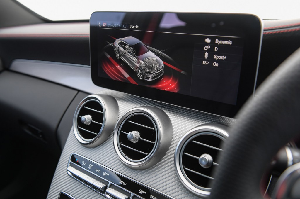 ที่ควบคุมได้จากพวงมาลัยเป็นแบบ 3 ก้าน AMG Performance Steering Wheel หุ้มด้วยหนัง Nappa ที่มาพร้อมกับแป้นเปลี่ยนเกียร์ Paddle Shift สำหรับโหมดเกียร์ธรรมดา และปุ่มมัลติฟังค์ชั่น Touchpad และ Controller ที่เพิ่มเติมขึ้นมา สำหรับควบคุมแผงหน้าปัด, Cruise Control และระบบมัลติมีเดีย เช่น ระบบโทรศัพท์ และ ระบบสั่งการด้วยเสียง
