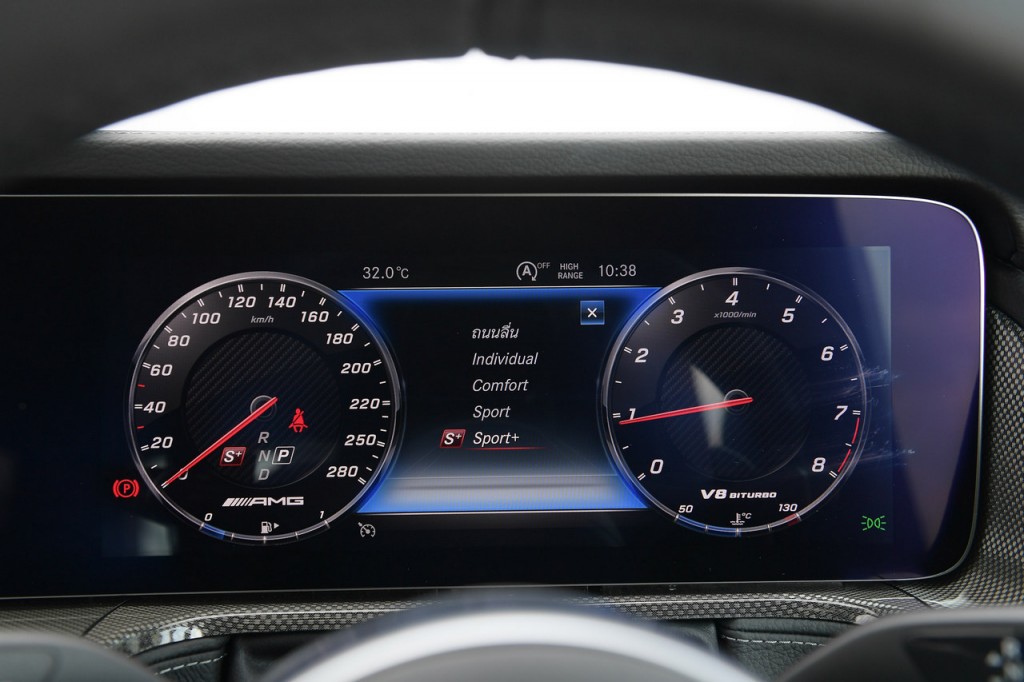 โดยทั้ง 2 หน้าจอนั้นเชื่อมต่อกันเป็นหนึ่งเดียว และสามารถแสดงผลได้ 3 แบบคือ Classic, Sporty และ Progressive ซึ่งจะแสดงภาพด้วยระบบ COMAND Online บนจอแสดงผล ที่ควบคุมได้จากบนมีพวงมาลัย AMG Performance หุ้มหนัง Nappa ตัดสลับ DINAMICA Microfibre นอกจากนี้ยังมีการดีไซน์ช่องแอร์เป็นทรงกลม เพื่อรักษา Theme เดียวกันชุดไฟหน้า และชุดไฟแสดงสถานะของรถบนแผงคอนโซลอีกด้วย