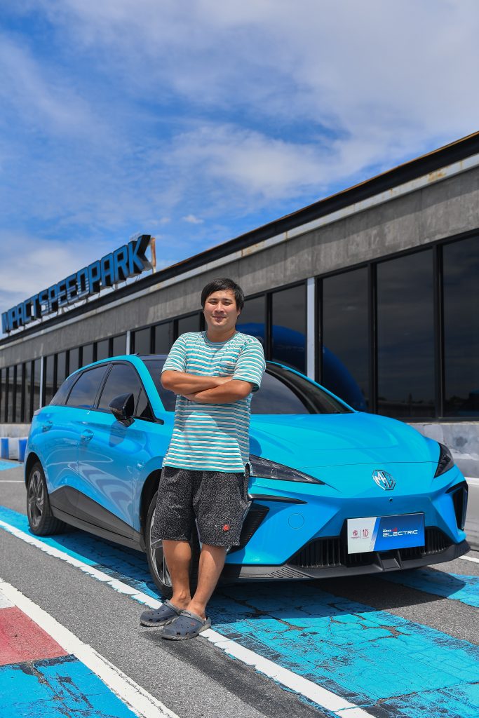 “ด้วยดีไซน์สปอร์ตโฉบเฉี่ยวของรถNEW MG4 ELECTRIC ที่มาพร้อมกับสมรรถนะที่ดี กับจุดเด่นของรถที่มีระบบขับเคลื่อนล้อหลัง ฐานล้อกว้าง ทำให้เกาะถนนได้ดี เข้าโค้งได้อย่างเฉียบคม ช่วงล่างอิสระ 4 ล้อ แบบ 5-LINK SUSPENSION ถือเป็นอีวีที่ขับสนุกและเร้าใจ มาพร้อมกับระบบความปลอดภัยที่ครอบคลุมสำหรับการขับขี่ กิจกรรมในครั้งนี้ ถือเป็นครั้งแรกที่ได้เอารถคันโปรดจากที่ใช้ขับบนท้องถนนมารีดสมรรถนะแบบเต็มๆ บนสนาม ถือเป็นการเพิ่มประสบการณ์การขับขี่และการใช้รถคันนี้ให้ได้ดียิ่งขึ้น”