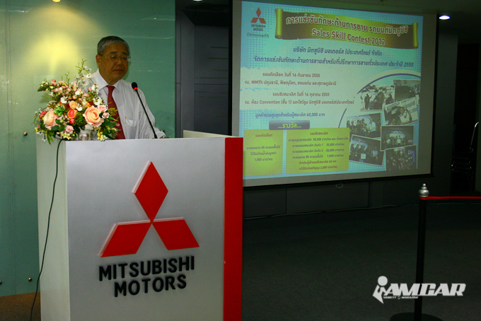มร.โนบุยูกิ มูราฮาชิ กรรมการผู้จัดการใหญ่ บริษัท มิตซูบิชิ มอเตอร์ส (ประเทศไทย) จำกัด เปิดเผยถึงการดำเนินงานด้านการขายของบริษัทว่านอกเหนือจากการขยายโชว์รูมและศูนย์บริการมาตรฐานให้ครอบคลุมทั่วประเทศเพื่อสร้างความสะดวกสบายให้กับลูกค้าที่สนใจในผลิตภัณฑ์ของมิตซูบิชิแล้ว บริษัทฯ ยังให้ความสำคัญกับการพัฒนาบุคคลากรทั้งด้านงานขายและการบริการควบคู่กันไปเพื่อสร้างความพึงพอใจให้กับลูกค้าที่เข้ารับบริการและเพื่อให้เป็นไปตามมาตรฐานของบริษัทฯ โดยล่าสุดได้มีการจัดการแข่งขันทักษะการขายรถยนต์มิตซูบิชิ หรือ Mitsubishi Sales Skill Contest ประจำปี 2555 เพื่อเป็นการทดสอบความรู้ความสามารถของพนักงานขายของผู้จำหน่าย รวมทั้งเป็นแนวทางในการพัฒนางานด้านการขายของบริษัทต่อไป