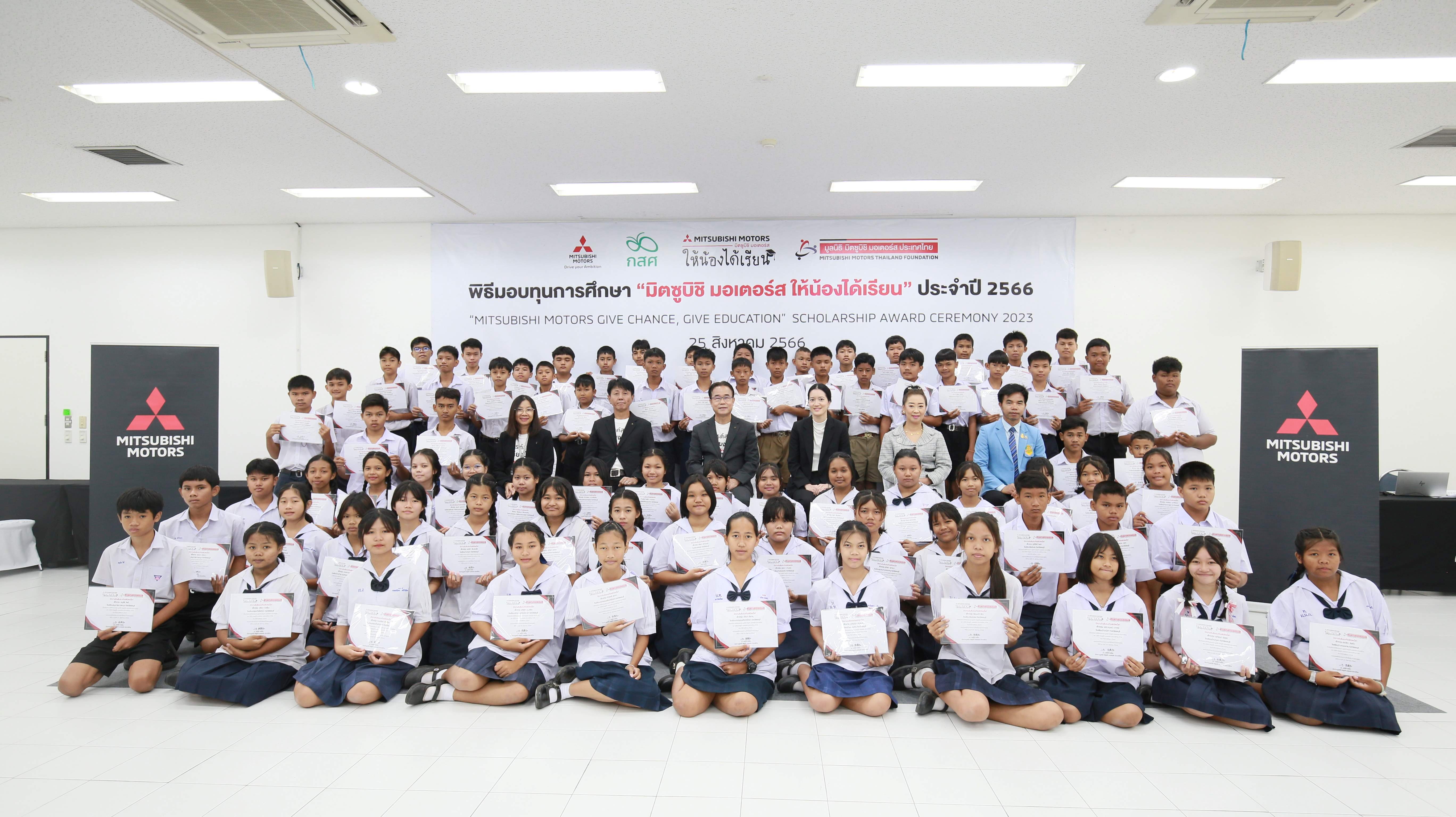 บริษัท มิตซูบิชิ มอเตอร์ส (ประเทศไทย) จำกัด และ มูลนิธิ มิตซูบิชิ มอเตอร์ส ประเทศไทย ร่วมกับ กองทุนเพื่อความเสมอภาคทางการศึกษา (กสศ.) มอบทุนการศึกษา 100 ทุน ให้แก่เด็กนักเรียนไทย ผ่านโครงการ ‘มิตซูบิชิ มอเตอร์ส ให้น้องได้เรียน’ เพื่อสร้างโอกาสและความเท่าเทียมทางการศึกษา ส่งเสริมให้เด็กนักเรียนได้ทำตามความฝันและยกระดับคุณภาพชีวิต โดยทุนการศึกษาทั้งหมดมอบให้แก่เด็กนักเรียนที่มีผลการเรียนดี มีความประพฤติดี แต่ขาดแคลนทุนทรัพย์เพื่อสนับสนุนการศึกษามิให้ขาดตอน สอดคล้องกับปณิธานของบริษัทฯ ที่มุ่งให้ความสำคัญกับการศึกษาและพร้อมตอบแทนสังคมไทยอย่างต่อเนื่อง