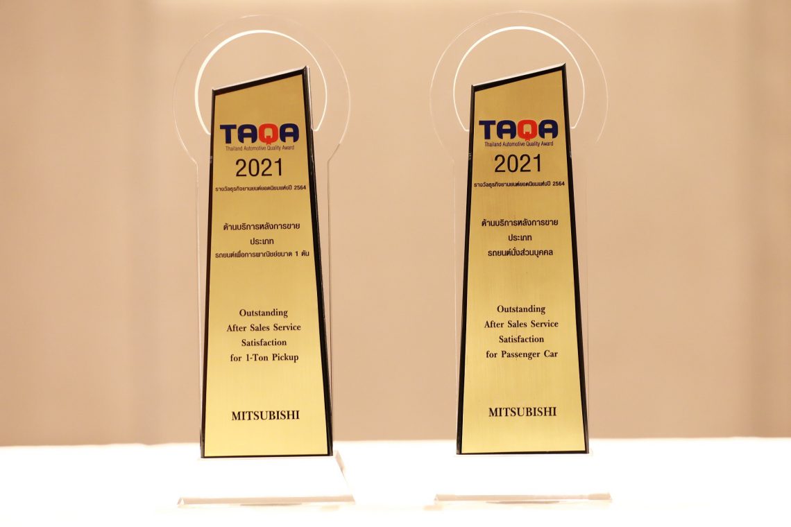 พร้อมกันนี้ มิตซูบิชิ มอเตอร์ส ประเทศไทย ยังสามารถคว้า 2 รางวัลอันทรงเกียรติจากเวทีการประกวดธุรกิจยานยนต์ยอดนิยมประจำปี 2564 หรือ TAQA ได้แก่ รางวัลธุรกิจยานยนต์ยอดนิยม ด้านบริการหลังการขาย ประเภทรถยนต์นั่งส่วนบุคคล และ รางวัลธุรกิจยานยนต์ยอดนิยม ด้านบริการหลังการขาย ประเภทรถยนต์เพื่อการพาณิชย์ขนาด 1 ตัน ซึ่งสะท้อนให้เห็นถึงความมุ่งมั่นของ มิตซูบิชิ มอเตอร์ส ประเทศไทย ในการสร้างความพึงพอใจสูงสุดให้แก่ลูกค้า เพื่อส่งมอบการบริการที่ดีที่สุดให้แก่ลูกค้าของเราอย่างต่อเนื่อง ทั้งนี้ มิตซูบิชิ มอเตอร์ส ประเทศไทย สามารถคว้ารางวัลอันทรงเกียรตินี้เป็นปีที่ 2 ติดต่อกันแล้ว ซึ่งพิสูจน์ให้เห็นถึงความพึงพอใจของลูกค้าที่มีต่อบริการหลังการขายของ มิตซูบิชิ มอเตอร์ส ประเทศไทย ได้อย่างดีเยี่ยม
