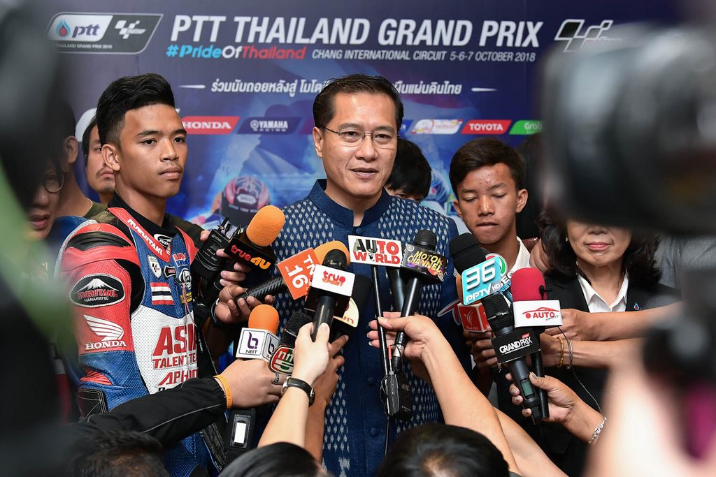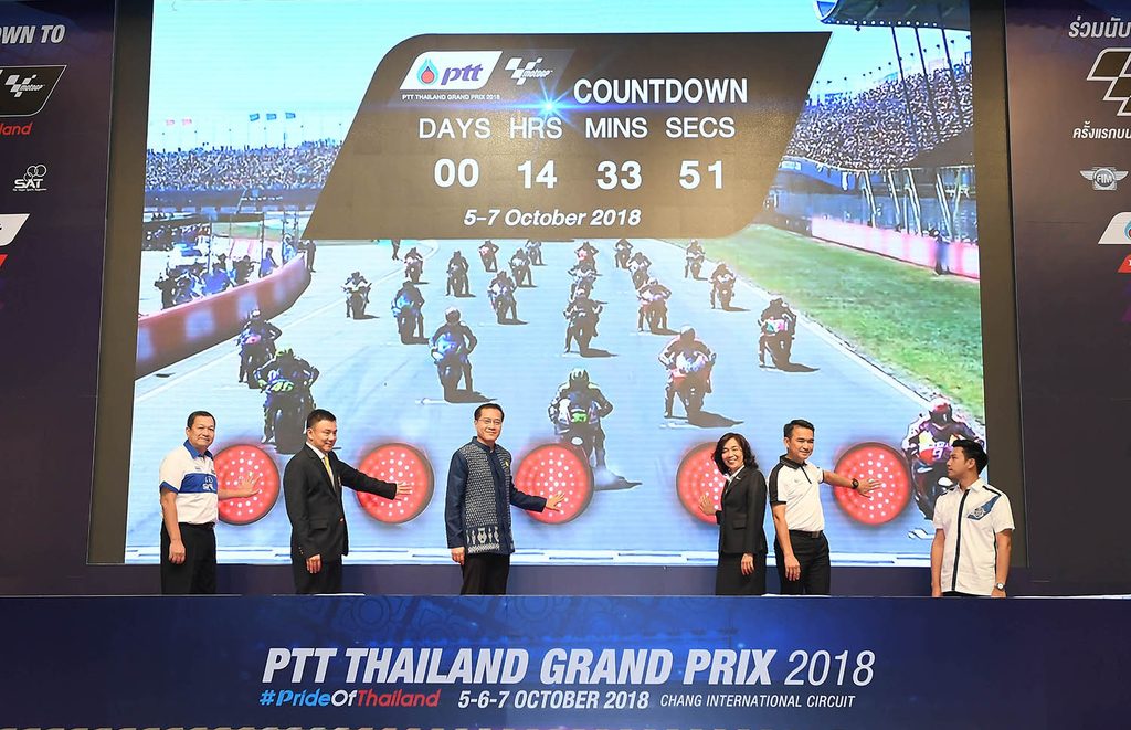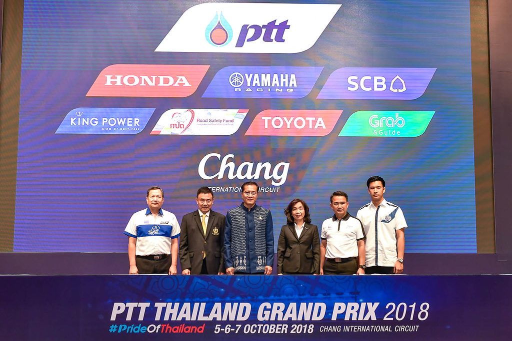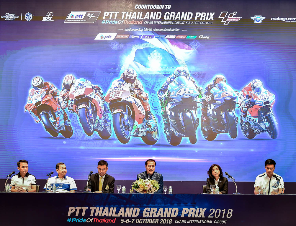 ล่าสุดเมื่อวันจันทร์ที่ 24 กันยายน ที่ผ่านมา กระทรวงการท่องเที่ยวและกีฬา, การกีฬาแห่งประเทศไทย (กกท.) ร่วมกับ จังหวัดบุรีรัมย์, บริษัท ปตท. น้ำมันและการค้าปลีก จำกัด (มหาชน) , สนามช้าง อินเตอร์เนชั่นแนล เซอร์กิต และเหล่าพันธมิตรร่วมกันแถลงข่าวความพร้อมในการร่วมกันเป็นเจ้าภาพจัดการแข่งขัน โมโตจีพี 2018 สนาม 15 รายการ พีทีที ไทยแลนด์ กรังด์ปรีซ์ ที่ อาคารเฉลิมพระเกียรติฯ การกีฬาแห่งประเทศไทย (หัวหมาก)โดยได้รับเกียรติจาก นายวีระศักดิ์ โควสุรัตน์ รัฐมนตรีว่าการกระทรวงท่องเที่ยวและกีฬา เป็นประธานในพิธีแถลงข่าว พร้อมด้วย พันโทรุจ แสงอุดม รองผู้ว่าการการกีฬาแห่งประเทศไทย ฝ่ายกีฬาอาชีพและสิทธิประโยชน์, นายอนุสรณ์ แก้วกังวาล ผู้ว่าราชการจังหวัดบุรีรัมย์, นางสาวจิราพร ขาวสวัสดิ์ รักษาการแทน ประธานเจ้าหน้าที่บริหารและกรรมการผู้จัดการใหญ่ บริษัท ปตท. น้ำมันและการค้าปลีก จำกัด (มหาชน) และนายตนัยศิริ ชาญวิทยารมณ์ กรรมการผู้อำนวยการ บริษัท บุรีรัมย์ยูไนเต็ด อินเตอร์เนชั่นแนล เซอร์กิต จำกัด ร่วมแถลงข่าวด้วย