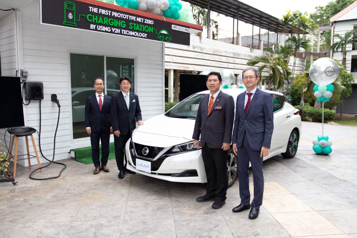 เมื่อเร็วๆ นี้ นิสสัน ประเทศไทย ร่วมลงนามบันทึกข้อตกลง หรือ MoU กับ มหาวิทยาลัยขอนแก่น (มข.) และบริษัท มิตซูบิชิ (ประเทศไทย) จำกัด เพื่อส่งเสริมผลักดันการใช้ประโยชน์จากความสามารถของรถยนต์ไฟฟ้าที่เป็นได้มากกว่ายานพาหนะ นิสสัน ประเทศไทย ได้นำ นิสสัน ลีฟ ซึ่งมีความสามารถในการชาร์จแบบสองทิศทางมาใช้เพื่อทำการวิจัย และศึกษาภายใต้ “โครงการต้นแบบระบบชาร์จรถยนต์ไฟฟ้าแบบ V2H ที่ใช้พลังงานสุทธิเป็นศูนย์” นับเป็นโครงการศึกษา V2H ครั้งแรก และใหญ่ที่สุดที่ นิสสัน ได้ร่วมมือกับมหาวิทยาลัยในประเทศไทย