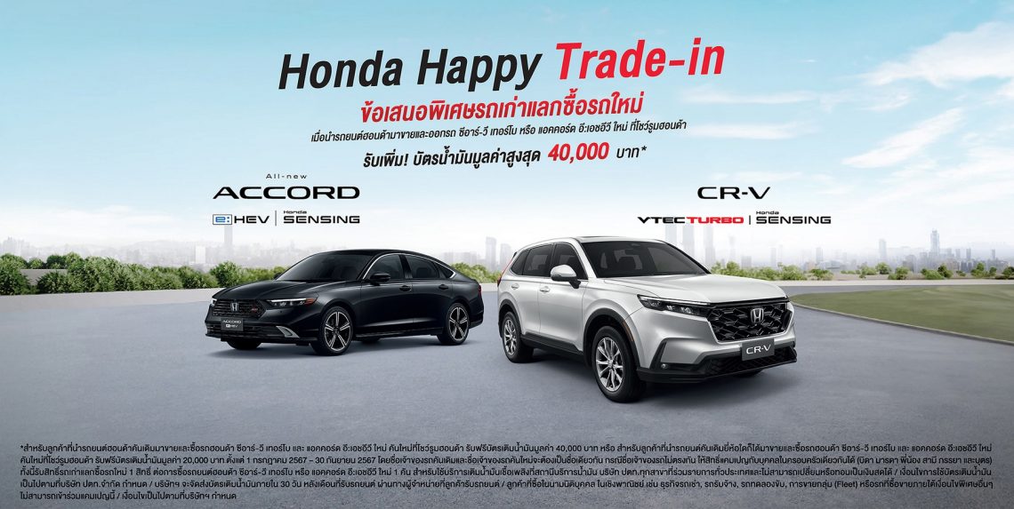 āļāļēāļĢāļāļĢāļ°āļāļļāļĄāđāļāđāļāļ āļāļąāđāļāđāļāđāļ§āļąāļāļāļĩāđ 23 āļŠāļīāļāļŦāļēāļāļĄ 2567 â 1 āļāļąāļāļĒāļēāļĒāļ 2567 āđāļāļĒāļĄāļēāļāļĢāđāļāļĄāļāđāļāđāļŠāļāļāļāļīāđāļĻāļĐāđāļāļĩāļĒāļ§āļāļąāļāļāļąāđāļāđāļāļāļēāļāđāļĨāļ°āļāļĩāđāđāļāļ§āđāļĢāļđāļĄāļŪāļāļāļāđāļēāļāļąāđāļ§āļāļĢāļ°āđāļāļĻ* āđāļĄāļ·āđāļāļāļāļāđāļĨāļ°āļĢāļąāļāļĢāļāļĒāļāļāđāļāļąāđāļāđāļāđāļ§āļąāļāļāļĩāđ 1 āļŠāļīāļāļŦāļēāļāļĄ 2567 â 1 āļāļąāļāļĒāļēāļĒāļ 2567 (āļŠāļģāļŦāļĢāļąāļ āļāļĩāļ§āļīāļ āđāļŦāļĄāđ āđāļĄāļ·āđāļāļāļāļāđāļĨāļ°āļĢāļąāļāļĢāļāļĒāļāļāđāļāļąāđāļāđāļāđāļ§āļąāļāļāļĩāđ 23 āļŠāļīāļāļŦāļēāļāļĄ 2567 â 30 āļāļĪāļĻāļāļīāļāļēāļĒāļ 2567) āļŠāļģāļŦāļĢāļąāļāļāđāļāđāļŠāļāļāļāļīāđāļĻāļĐāļĢāļāđāļāđāļēāđāļĨāļāļāļ·āđāļāļĢāļāđāļŦāļĄāđ (Honda Happy Trade-in) āļāļāļ āļāļĩāļāļēāļĢāđ-āļ§āļĩ āđāļāļāļĢāđāđāļ āļŦāļĢāļ·āļ āđāļāļāļāļāļĢāđāļ āļāļĩ:āđāļāļāļāļĩāļ§āļĩ āđāļŦāļĄāđ āđāļĄāļ·āđāļāļāļāļāđāļĨāļ°āļĢāļąāļāļĢāļāļĒāļāļāđāļāļąāđāļāđāļāđāļ§āļąāļāļāļĩāđ 1 āļāļĢāļāļāļēāļāļĄ 2567 â 30 āļāļąāļāļĒāļēāļĒāļ 2567 āđāļāļĒāļŠāļēāļĄāļēāļĢāļāļŠāļāļāļāļēāļĄāļāđāļāļĄāļđāļĨāđāļāļīāđāļĄāđāļāļīāļĄāđāļāđāļāļēāļāļāļĩāđāļāļĢāļķāļāļĐāļēāļāļēāļĢāļāļēāļĒāđāļāļ§āđāļĢāļđāļĄāļāļąāđāļāđāļāļāļēāļāļŊ āđāļĨāļ°āđāļāļ§āđāļĢāļđāļĄāļŪāļāļāļāđāļēāļāļąāđāļ§āļāļĢāļ°āđāļāļĻ āļŦāļĢāļ·āļāđāļāļāļāļąāļāļāļĩāđāļāļĢāļķāļāļĐāļēāļāļēāļĢāļāļēāļĒāļāļēāļāļāļāļāđāļĨāļāđāļāđāļēāļāđāļ§āđāļāđāļāļāđ www.honda.co.th āļŦāļĢāļ·āļāļāļīāļāļāđāļāļĻāļđāļāļĒāđāļāļĢāļīāļāļēāļĢāļāđāļāļĄāļđāļĨāļŪāļāļāļāđāļē 24 āļāļąāđāļ§āđāļĄāļ āđāļāļĢ 0 2341 7777