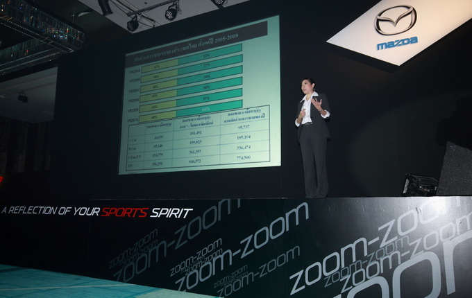 นอกจากนี้มาสด้ายังคาดการณ์สำหรับตลาดรถยนต์รวมปีนี้จะเป็นปีทองของตลาดรถยนต์สำหรับประเทศไทย ซึ่งจะเป็นปีที่มียอดขายสูงสุดในประวัติศาสตร์ ซึ่งน่าจะทำได้เกิน 700,000 คัน หรือเพิ่มขึ้นจากปี 2552 (548,620 คัน) ประมาณ 28%