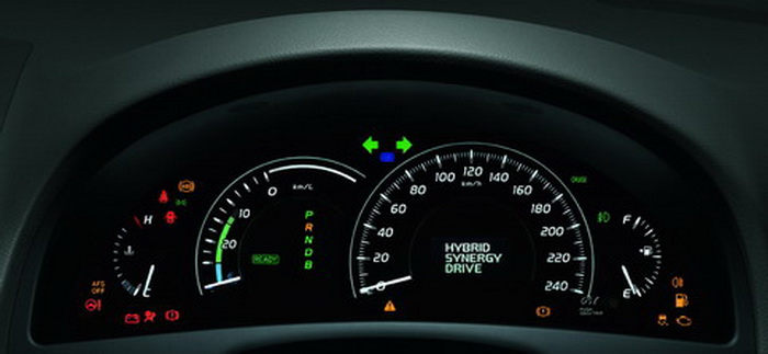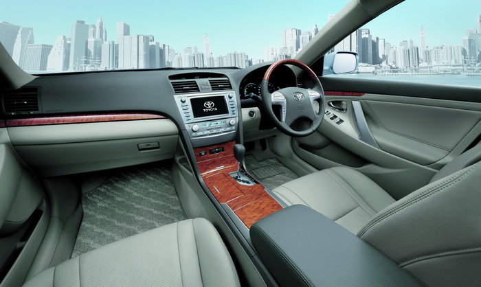 ภายในตกแต่งด้วยสีเบจ พร้อมมาตรวัดเรืองแสงออปตริตรอน เข็มวัดระดับการใช้น้ำมัน และหน้าจอแสดงการทำงานของระบบไฮบริด เพื่อให้ผู้ขับได้ทราบถึงสถานะของระบบขณะขับขี่ พื้นที่เก็บสัมภาระขนาดใหญ่ ปริมาตรความจุเทียบเท่ารถยนต์คัมรีเครื่องยนต์เบนซินปกติ สามารถบรรจุกระเป๋าเดินทางใบใหญ่ หรือถุงกอล์ฟได้ถึง 4 ใบ