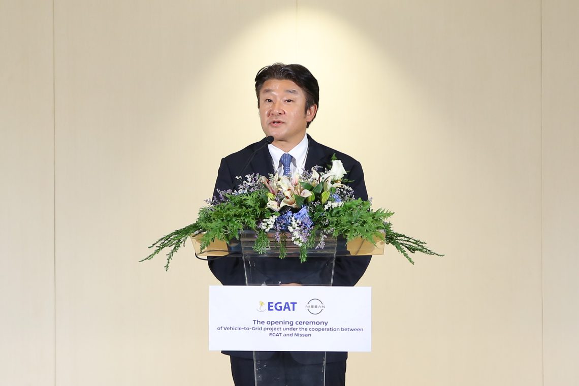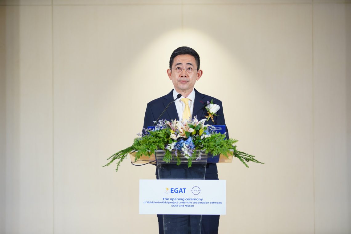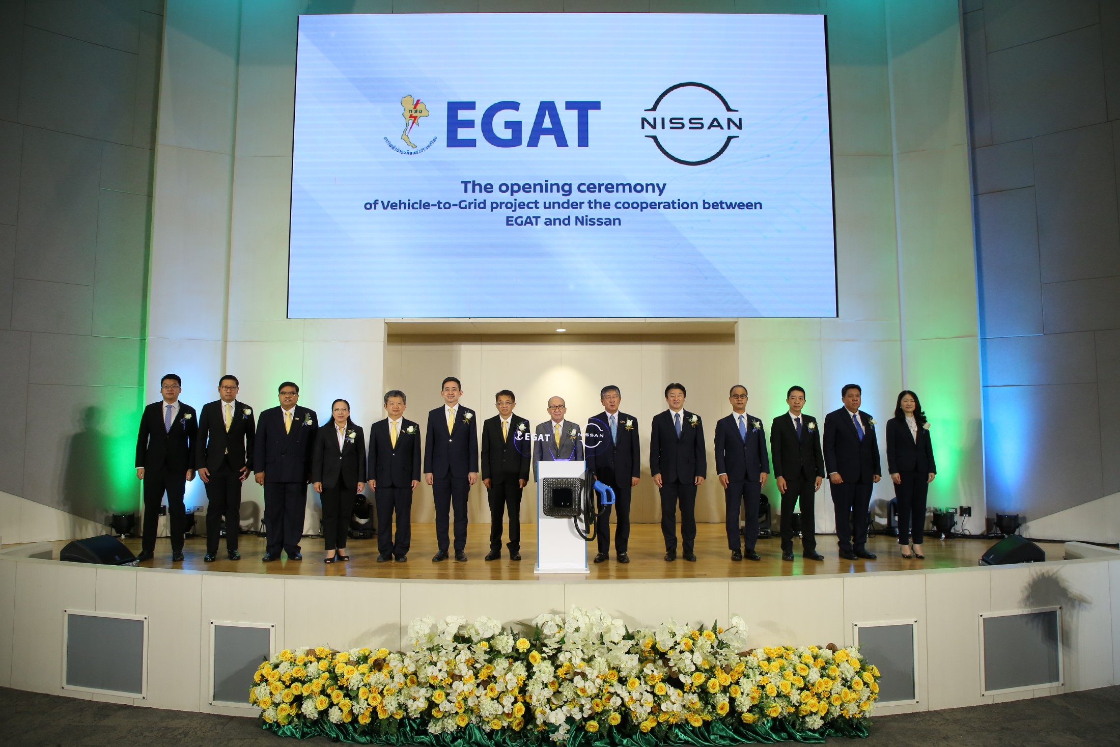 โดยในพิธี ได้รับเกียรติจาก ฯพณฯคาซูยะ นาชิดะ เอกอัครราชทูตญี่ปุ่นประจำประเทศไทย กล่าวแสดงความยินดี และ ดร. ศิริ จิระพงษ์พันธ์ ที่ปรึกษารัฐมนตรีว่าการกระทรวงพลังงาน ร่วมเป็นประธานในพิธีเปิดโครงการความร่วมมือระหว่าง บริษัท นิสสัน มอเตอร์ (ประเทศไทย) จำกัด กับ กฟผ. นำร่องศึกษาการแปลงพลังงานระหว่างยานยนต์ไฟฟ้ากับระบบไฟฟ้า (Vehicle-to-Grid หรือ V2G) และการควบคุมกำลังไฟฟ้าจากศูนย์ควบคุมกำลังไฟฟ้าแห่งชาติ พร้อมด้วยผู้บริหารทั้งสองหน่วยงาน ณ ห้องออดิทอเรียม อาคาร 50 ปี กฟผ. สำนักงานใหญ่ จ.นนทบุรี