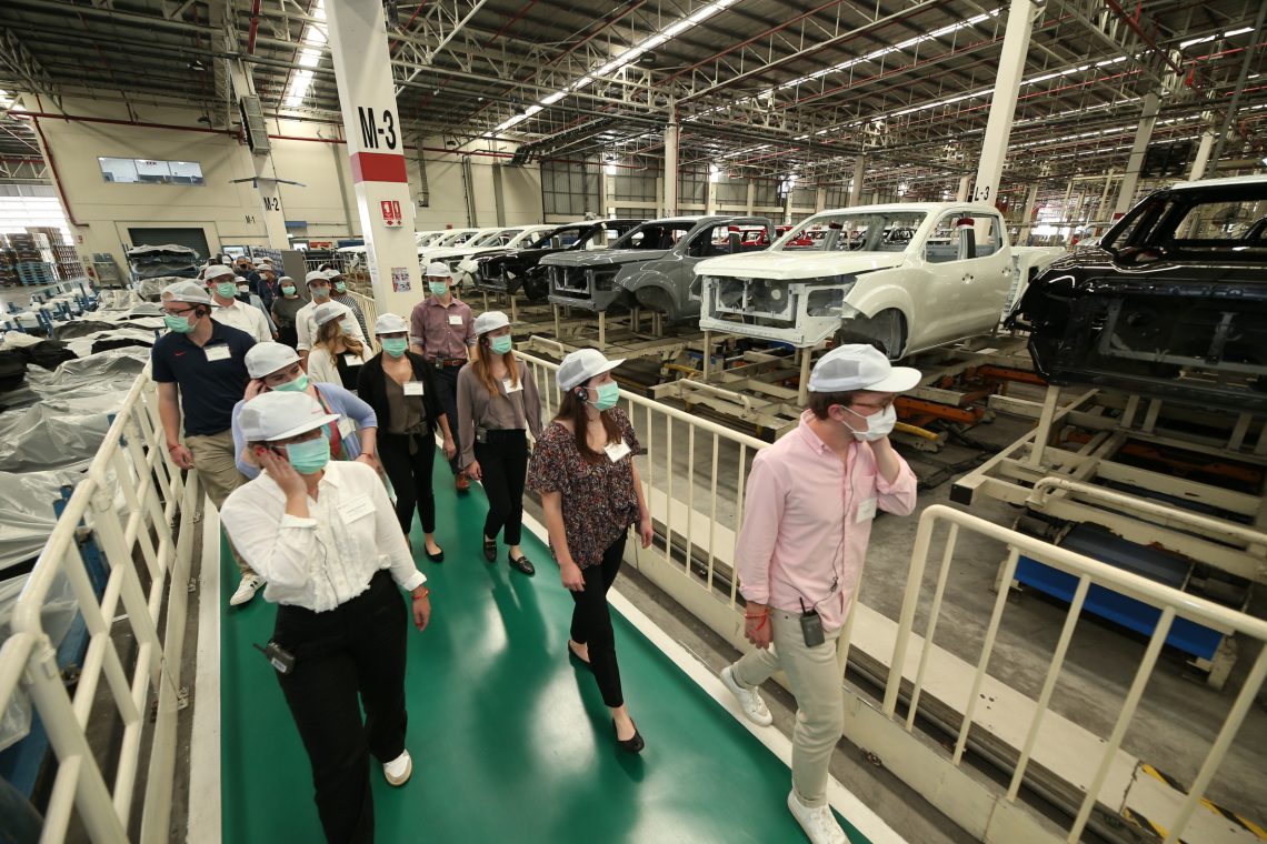 คณะนักศึกษากว่า 20 คน ซึ่งนำโดย ศาสตราจารย์เจมส์ แมกซ์แฮม และคณะบดี นิโคล ที. เจนกินส์ ได้มีโอกาสเยี่ยมชมสายการผลิต เพื่อดูขั้นตอนการประกอบนิสสัน นาวารา และ เทอร์ร่า