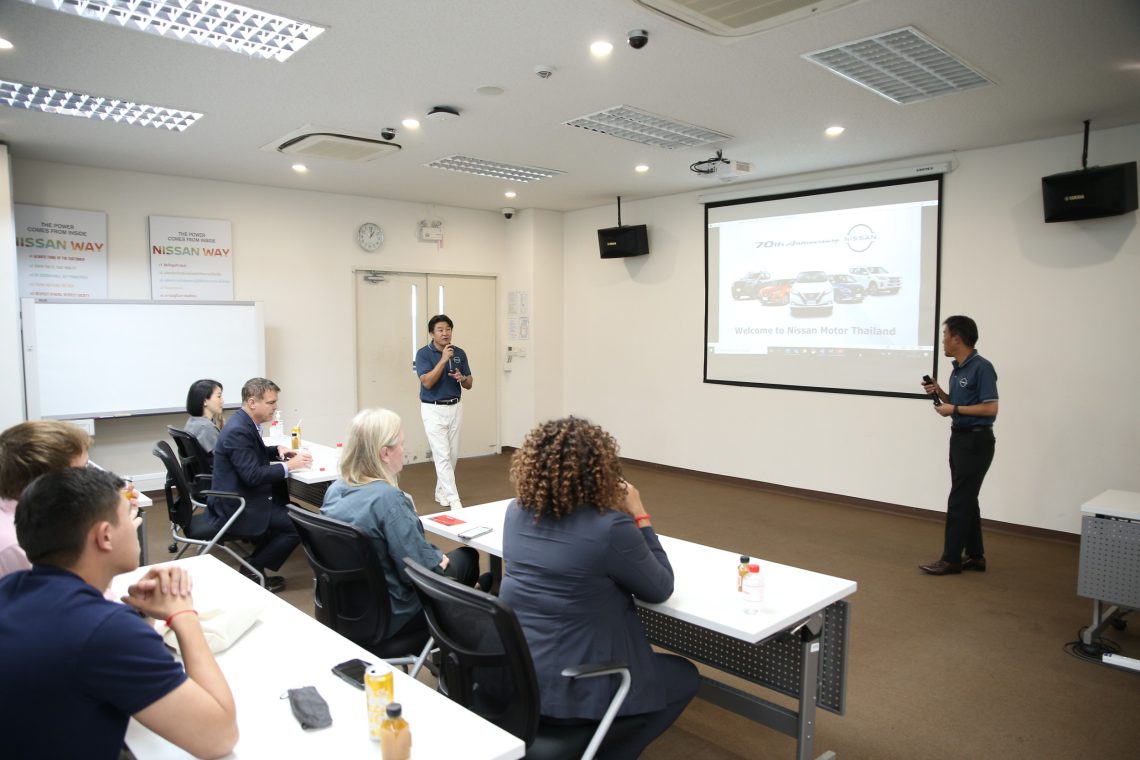 นิสสัน ประเทศไทย ต้อนรับนักศึกษาจากคณะบริหารธุรกิจ แมคอินไทร์ สคูล ออฟ คอมเมิร์ช มหาวิทยาลัยเวอร์จิเนีย (McIntire School of Commerce, University of Virginia) สู่ศูนย์กลางการผลิตของ นิสสัน ในประเทศไทย เพื่อเปิดประสบการณ์และเรียนรู้เพิ่มเติมเกี่ยวกับการดำเนินธุรกิจในประเทศไทย และเวียดนาม ซึ่งเป็นส่วนหนึ่งของหลักสูตรของมหาวิทยาลัยในด้าน “ข้อมูลเชิงลึกของผู้บริโภคในประเทศไทย และเวียดนาม” โดยมี อิซาโอะ เซคิกุจิ ประธาน นิสสัน ประเทศไทย ในฐานะศิษย์เก่าพร้อมคณะผู้บริหารนิสสัน พาชมสายการผลิต และนำเสนอความรู้ในชีวิตจริง และข้อมูลเชิงลึกของผู้บริโภคเกี่ยวกับอุตสาหกรรมยานยนต์ในภูมิภาคนี้