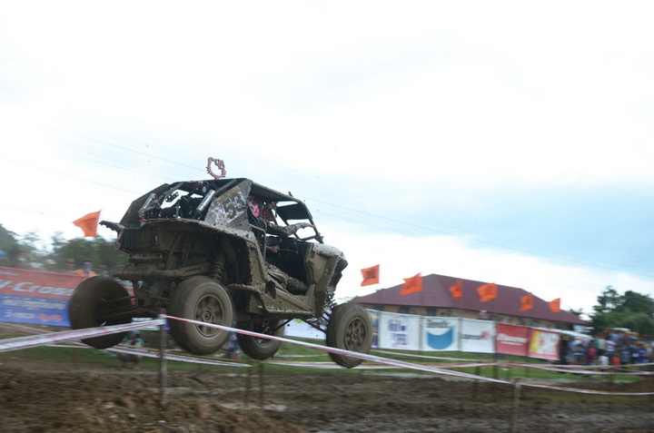 เริ่มต้นความมันส์ในรอบชิงขนะเลิศในช่วงล่างแบบปีกนก พร้อมๆ กับผู้ชมการถ่ายทอดสดพร้อมกันทั่วโลก ตัวเต็งอย่าง อัฎฐัทยุต มัจฉาปรีดาภัทร์ และนฤนาท แสงอินทร์ หมายเลข 12 จากทีม PTT Performa ARB อู่ทรงไทยฯ แชมป์สนามที่แล้ว พบกับ วิเชษฐ์ บินมาลา และพีรพันธ์ ประพฤติธรรม ศิษฐ์เอกวัดคู้บอน หมายเลข 33 จากทีม สุดยอดการยาง Blackrhino Profender หลังจากออกตัวได้อย่างสูสี ในช่วงแรก แต่ปรากฎว่าหมายเลข 12 สาดโค้งอย่างแรงทำไห้พลาดไปชนเสา1 หลักโดนปรับเวลา ไป10 วินาที ทำให้ต้องกดคันเร่งสุดเท้า ไล่บี้หมายเลข 33 ให้ทัน และด้วยความเก๋าสนามทำให้สามารถไล่บี้แซงขึ้นมาได้ เรียกเสียงเฮลั่นสนามมีลุ้นแชมป์ แต่ในช่วง 100 เมตรสุดท้าย โชคกลับไม่เข้าข้าง เมื่อเพลาขับมีปัญหาทำให้ล้อหน้าไม่ทำงาน วิ่งได้แค่ 2 ล้อหลัง จึงไม่สามารถรอดอุโมงค์ที่เต็มไปด้วยโคลนได้ ต้องยอมแพ้ พลาดแชมป์สนามนี้ไปอย่างน่าเสียดาย