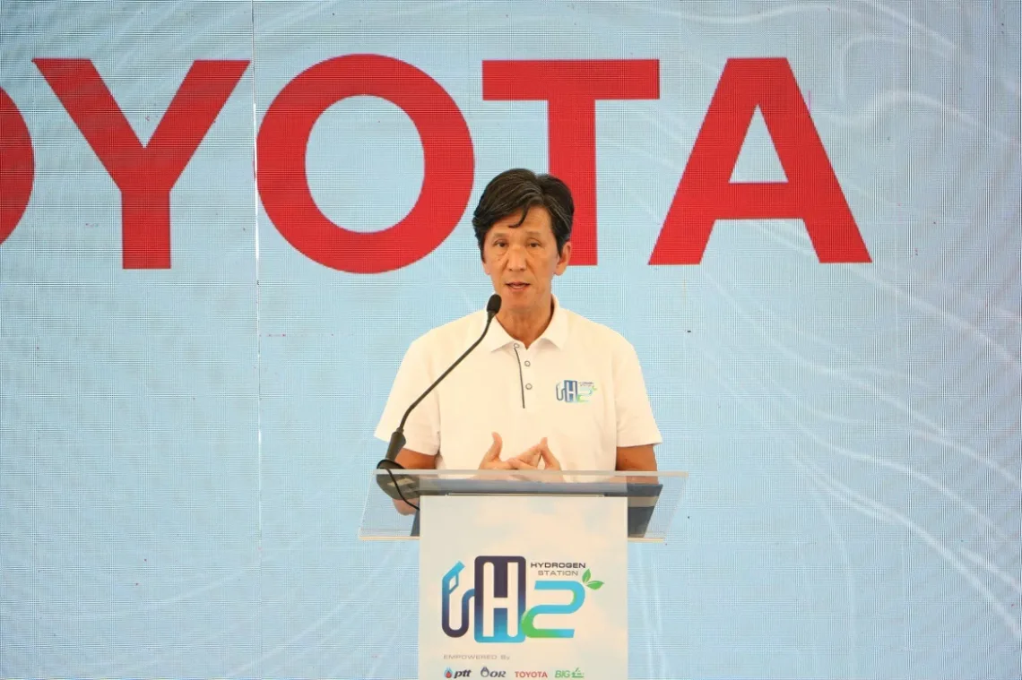 นายโนริอากิ ยามาชิตะ กรรมการผู้จัดการใหญ่ บริษัท โตโยต้า มอเตอร์ ประเทศไทย จำกัด (TMT) กล่าวว่า โตโยต้ามีความท้าทายในการบรรลุเป้าหมายความเป็นกลางทางคาร์บอนในปี 2050 โดยมีกลยุทธหลักว่าด้วยการเตรียมความพร้อมด้านเทคโนโลยีและนวัตกรรมยานยนต์ในหลากหลายแนวทาง หรือ Multi Pathway เพื่อนำเสนอทางเลือกในการเดินทางที่เหมาะสมกับลูกค้าแต่ละกลุ่มที่มีความต้องการที่แตกต่างกัน ด้วยยานยนต์หลากหลายระบบขับเคลื่อน เพื่อให้สอดคล้องกับแนวคิดในการตอบสนองการขับเคลื่อนของทุกคนโดยไม่ทิ้งใครไว้เบื้องหลัง ทั้งนี้ เพื่อให้เทคโนโลยียานยนต์ในรูปแบบต่าง ๆ ได้ถูกนำไปใช้งานได้จริง เราจำเป็นที่จะต้องทำความเข้าใจถึงรูปแบบการใช้งานที่เหมาะสมกับประเทศไทย จึงได้ริเริ่มโครงการ”การจัดตั้งเมืองที่ยั่งยืนโดยปราศจากมลภาวะ Decarbonized Sustainable City” โดยมีรถยนต์รถยนต์ไฟฟ้าเซลล์เชื้อเพลิง โตโยต้า มิไร เป็นส่วนหนึ่งของโครงการทดลองนี้ เนื่องจากเป็นยานยนต์ที่ขับเคลื่อนด้วยไฮโดรเจนอันเป็นพลังงานทางเลือกที่ไม่ส่งผลกระทบต่อสิ่งแวดล้อม ทั้งนี้ ในการบรรลุเป้าหมายความเป็นกลางทางคาร์บอนนั้น โตโยต้ามิอาจบรรลุพันธกิจดังกล่าวได้เพียงลำพัง แต่ยังต้องอาศัยความร่วมมือและการสนับสนุนจากพันธมิตรที่มีเป้าหมายเดียวกัน ดังเช่น โครงการความร่วมมือฯ อันนำมาซึ่งกิจกรรมการเปิดสถานีไฮโดรเจนแห่งแรกในเมืองไทยในวันนี้ ผมหวังว่าความร่วมมือในวันนี้จะเป็นส่วนสำคัญในการเติมเต็มแผนยุทธศาสตร์ Multi Pathway ของเรา ตลอดจนเป็นการร่วมเติมเต็มวิสัยทัศน์ของประเทศในการบรรลุเป้าหมายความเป็นกลางทางคาร์บอนต่อไป