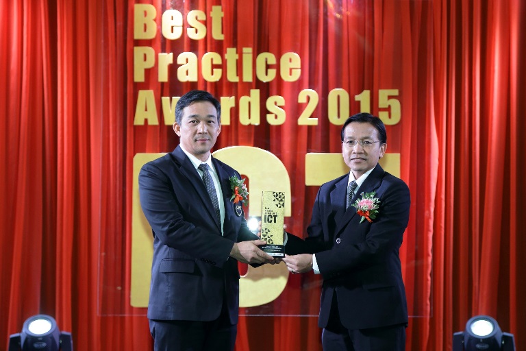 พ.อ.ผศ.ดร. สรรพชัย หุวะนันทน์ กรรมการบริษัท รักษาการในตำแหน่ง กรรมการผู้จัดการใหญ่ บริษัท กสท โทรคมนาคม จำกัด (มหาชน) มอบรางวัล Best Customer Experience Management จากโครงการ PTT Blue Card Mobile Application ให้แก่ นายกฤษณ์ อิ่มแสง ผู้ช่วยกรรมการผู้จัดการใหญ่การตลาดขายปลีก บริษัท ปตท. จำกัด (มหาชน) ในพิธีมอบรางวัล ICT Best Practice Awards 2015 ในฐานะที่ PTT Blue Card Mobile Application สามารถสร้างความพึงพอใจและประทับใจให้แก่ลูกค้าผ่านการใช้งานแอพพลิเคชั่นที่ตอบโจทย์ ผู้บริโภคได้จริงอย่างเป็นรูปธรรม