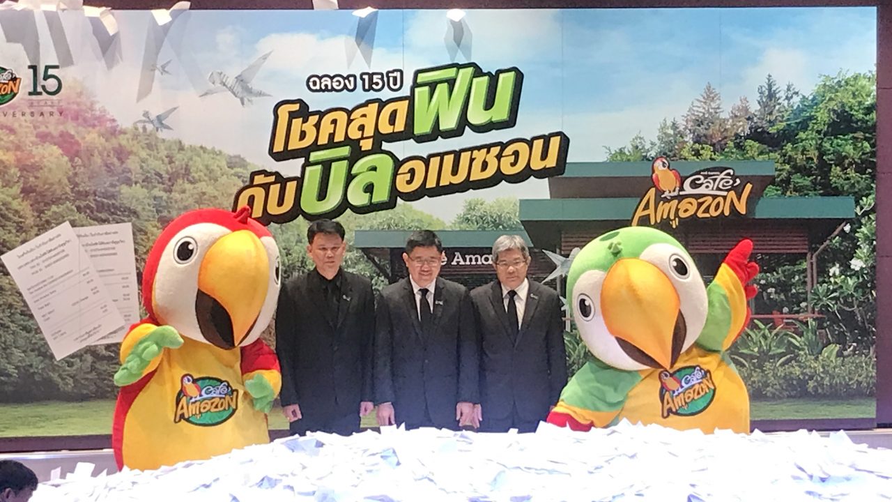 นายบุรณิน รัตนสมบัติ ผู้ช่วยกรรมการผู้จัดการใหญ่ธุรกิจหล่อลื่น บริษัท ปตท. จำกัด (มหาชน) เป็นประธานในการจับรางวัลแก่ผู้โชคดีจากกิจกรรม “โชคสุดฟินกับบิลอเมซอน” ฉลองครบรอบ 15 ปี ซึ่งจัดขึ้นระหว่างวันที่ 15 มิถุนายน ถึง 15 กันยายน 2560 ที่ผ่านมา โดยมอบรางวัลรถยนต์ Mercedes-Benz รุ่น C350 e Plug – in Hybrid จำนวน 1 รางวัล ทองคำแท่ง น้ำหนัก 5 บาท จำนวน 20 รางวัล และทองคำแท่ง น้ำหนัก 1 บาท จำนวน 100 รางวัล รวมทั้งสิ้น 121 รางวัล มูลค่า6,772,000 ล้านบาท แทนคำขอบคุณที่ผู้บริโภคไว้วางใจใช้บริการร้านคาเฟ่ อเมซอนด้วยดีเสมอมา