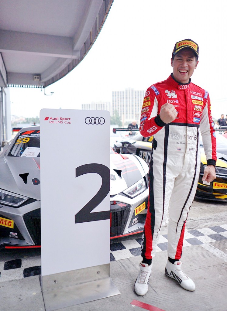 ภูริต ภิรมย์ภักดี จากทีมสิงห์ แพลน-บี บาย แอบโซลูท เรซซิ่ง ประเดิมโพเดียมหลังเข้าเส้นชัยอันดับสอง ตามหลังยาสเซอร์ ชาฮิน นักขับชาวออสเตรเลียนเพียงเสี้ยววินาที ในการแข่งขันรถยนต์ทางเรียบ “ออดี้ อาร์ 8 แอลเอ็มเอส คัพ 2019” ณ จูไห่ อินเตอร์เนชั่นแนล เซอร์กิต สาธารณรัฐประชาชนจีน เมื่อวันที่ 3 พ.ค.ที่ผ่านมา