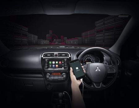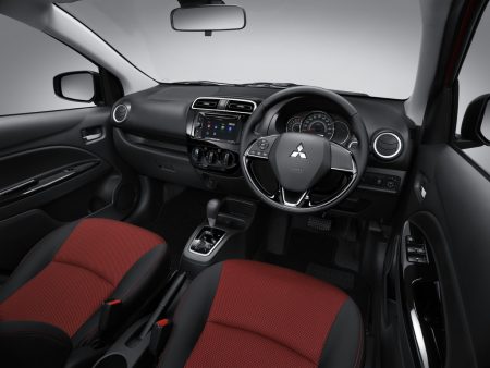 มิตซูบิชิ มิราจ ใหม่ มาพร้อมกับกุญแจอัจฉริยะ KOS พร้อมปุ่มสตาร์ทเครื่องยนต์และระบบป้องกันการโจรกรรมเพื่อการใช้งานที่สะดวกสบายยิ่งขึ้น นอกจากนี้ยังมีระบบล็อกความเร็วบนพวงมาลัย ระบบปรับอากาศอัตโนมัติ สวิตช์ควบคุมการสั่งงานด้วยเสียง และปุ่มรับสาย-วางสายโทรศัพท์บนพวงมาลัย ระบบเครื่องเสียงรองรับ Apple CarPlay1 พร้อมระบบสั่งงานด้วยเสียง SIRI1 และหน้าจอสัมผัสรองรับดีวีดีและเอ็มพีทรี ภายในของ มิตซูบิชิ มิราจ ใหม่ ยังได้รับการยกระดับด้วยเบาะที่นั่งวัสดุหนังและหนังสังเคราะห์และหัวเกียร์หุ้มหนัง รวมถึงการตกแต่งด้วยวัสดุสีดำเปียโนแบล็ก