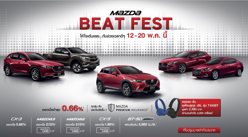มาสด้าแรงต่อ เดือนพฤษภาคมโตอีก 23% โดยมีรถยนต์รุ่นต่อไปนี้ เป็นตัวกระตุ้นให้ยอดขายทะลุเป้า Mazda 2 , Mazda 3 ,Mazda CX-3 ,Mazda CX-5 ,Mazda BT-50,Mazda MX-5
