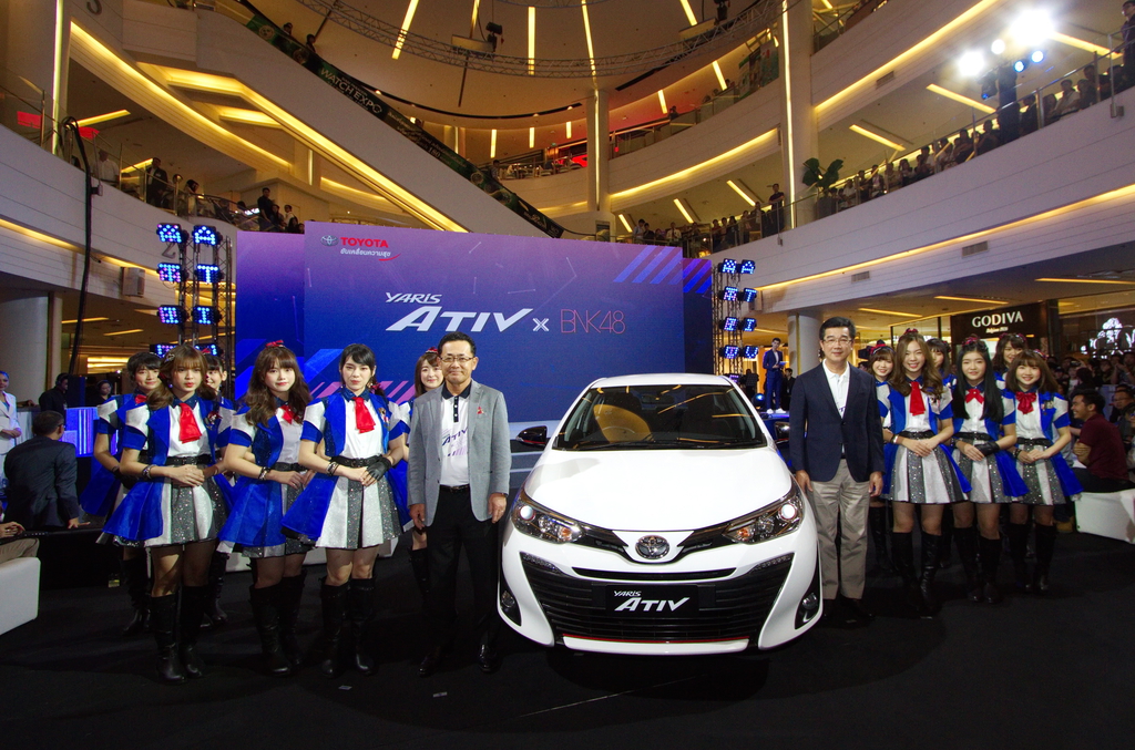 โตโยต้า แถลงข่าวฉลองความสำเร็จ Yaris ATIV ยอดขายสูงสุดในตลาดรถอีโคคาร์ซีดาน พร้อมเปิดตัวพรีเซ็นเตอร์ “BNK 48” สะท้อนภาพลักษณ์คนรุ่นใหม่ ที่มีความสนุกสนานและมีเอกลักษณ์เป็นของตัวเอง เมื่อวันที่ 9 สิงหาคม 2561 ณ แฟชั่นฮอลล์ ชั้น 1 สยามพารากอน