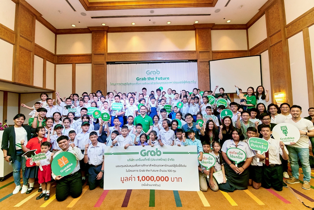 แกร็บ มอบทุนแก่บุตรของพาร์ทเนอร์ผู้ขับขี่ ในโครงการ ‘Grab the Future’ ด้วยตระหนักดีว่าการศึกษาเป็นรากฐานที่สำคัญของเยาวชนซึ่งถือเป็นพลังการขับเคลื่อนการพัฒนาประเทศในอนาคต แกร็บ ประเทศไทย จึงได้จัดงานมอบทุนสนับสนุนการศึกษาแก่บุตรพาร์ทเนอร์ผู้ขับขี่จำนวน 100 ทุน ทุนละ 10,000 บาท รวมมูลค่า 1 ล้านบาท