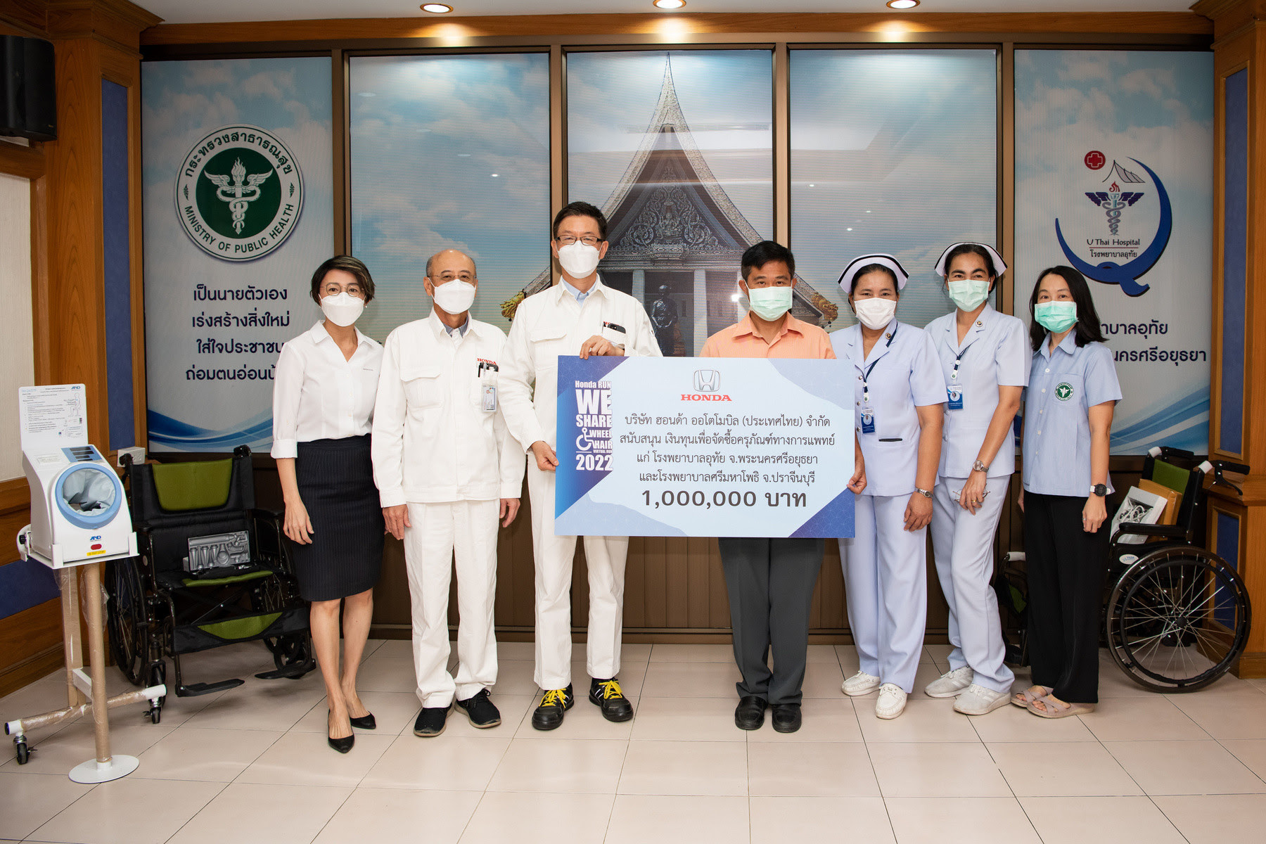 บริษัท ฮอนด้า ออโตโมบิล (ประเทศไทย) จำกัด สานต่อเจตนารมณ์ในการดำเนินธุรกิจด้วยความรับผิดชอบต่อสังคม มอบรายได้โดยไม่หักค่าใช้จ่ายจำนวน 1 ล้านบาท จากกิจกรรมวิ่งการกุศล “Honda RUN We Share Wheelchair 2022” ของพนักงานฮอนด้าและครอบครัว ผู้จำหน่ายรถยนต์ฮอนด้า และสื่อมวลชน ให้แก่ โรงพยาบาลอุทัย จ.พระนครศรีอยุธยา และโรงพยาบาลศรีมหาโพธิ จ.ปราจีนบุรี สำหรับจัดซื้ออุปกรณ์ทางการแพทย์ที่ยังขาดแคลน เพื่อให้ความช่วยเหลือแก่ผู้ป่วยในพื้นที่และจังหวัดใกล้เคียงต่อไป