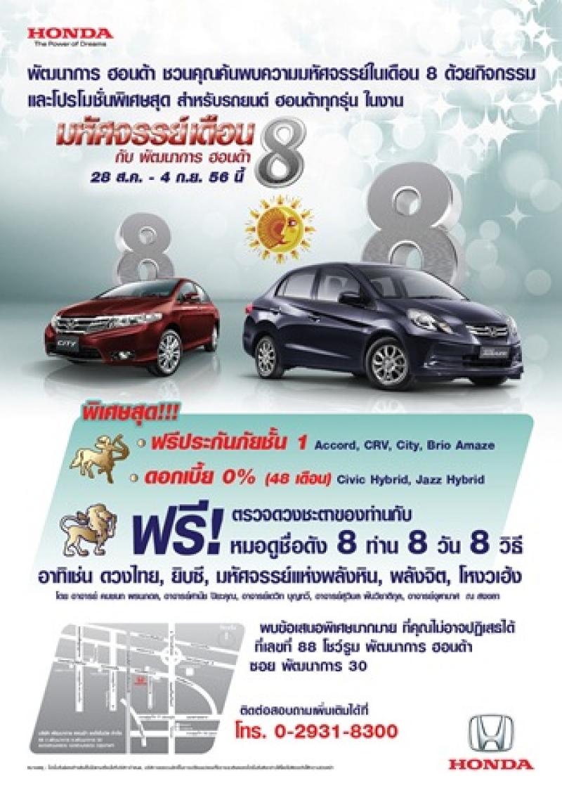 พัฒนาการ ฮอนด้า ชวนคุณค้นพบความมหัศจรรย์ในเดือน 8 ด้วยกิจกรรมและโปรโมชั่นพิเศษสุด สำหรับรถยนต์ ฮอนด้าทุกรุ่น ในงาน “เดือน 8 มหัศจรรย์ กับ พัฒนาการ ฮอนด้า”