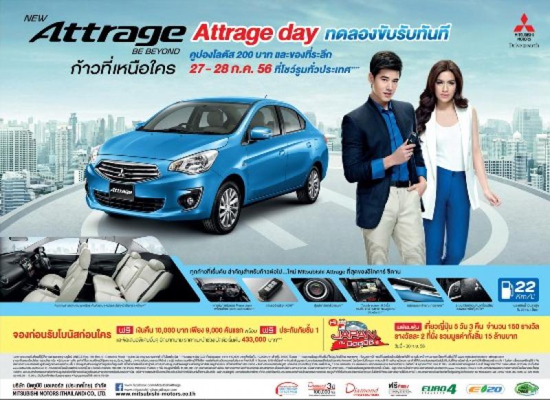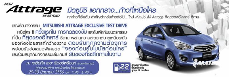 หลังจากบริษัท มิตซูบิซิ มอเตอร์ส (ประเทศไทย) จำกัด เปิดตัว MITSUBISHI Attrage ( มิตซูบิชิ แอททราจ ) อย่างยิ่งใหญ่ ณ สยามพารากอน โชว์ก้าวแรกที่เหนือกว่าใครด้วยฟังก์ชั่นการใช้งานที่มากกว่า ECO CAR ในท้องตลาดเมืองไทย พร้อมทั้งยกระดับอัตราสิ้นเปลืองการใช้เชื้อเพลิงเป็น 22 กม./ลิตร และเพื่อตอกย้ำความมั่นใจให้กับผู้บริโภค จึงจัดกิจกรรมการทดสอบให้สื่อมวลชนร่วมพิสูจน์ในเส้นทาง นครพนม – โขงเจียม – อุบลราชธานี ระยะทางกว่า 400 กม. แต่ MITSUBISHI…