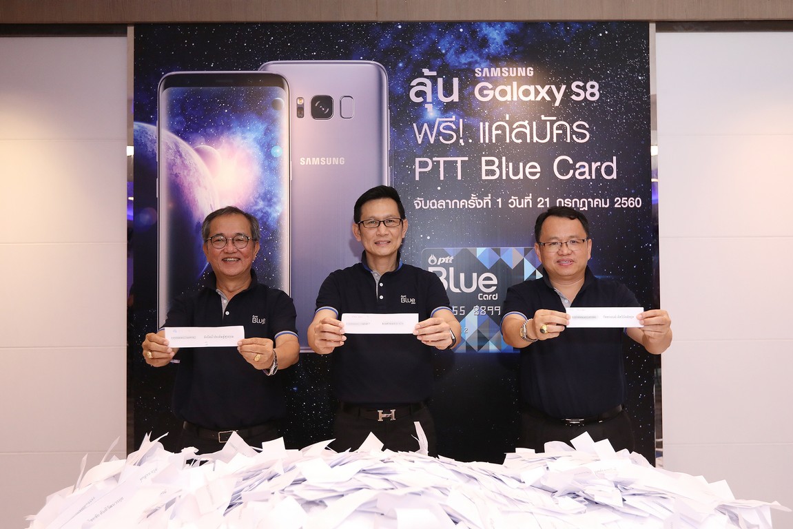 ปตท. มอบโชครายการ “ลุ้น Samsung S8 ฟรี แค่สมัคร PTT Blue Card” จำนวนทั้งสิ้น 300 รางวัล รวมมูลค่าทั้งสิ้น 4,320,000 บาท ประกอบด้วย รางวัลที่ 1 โทรศัพท์มือถือ Samsung รุ่น Samsung Galaxy S8 มูลค่า 27,900 บาท จำนวน 150 รางวัล รวมมูลค่า 4,185,000 บาท จับรางวัลครั้งละ 50 รางวัล