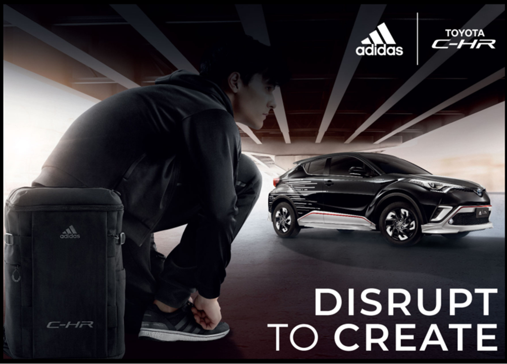 อาดิดาสได้ออกแบบรถ Toyota C-HR ที่ได้รับการตกแต่งพิเศษ (ADIDAS Inspired Design) โดยสื่อถึงสิ่งที่ ADIDAS และ Toyota C-HR มีความเหมือนกันคือสมรรถนะจากเทคโนโลยีอันเป็นที่สุด โดย ADIDAS ได้นำชุดอุปกรณ์ตกแต่งแท้ของโตโยต้า มาแต่งเเละออกแบบลวดลายลงบนรถ Toyota C-HR