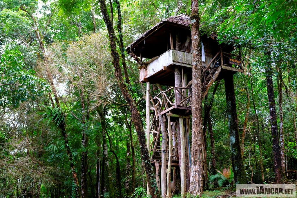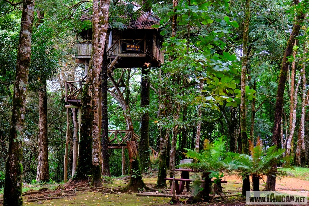 ออกจากน้ำตกก่อน กลับเข้ากรุงเทพเราจะพาเพื่อนๆไปแวะบ้านทาร์ซาน หรือ บ้านต้นไม้ซึ่งตั้งอยู่ในอุทยานแห่งชาติทองผาภูมินั่นเองค่ะ ในอดีตที่นี่เคยเปิดเป็นที่พักแต่ปัจจุบันปิดปรับปรุงค่ะเป็นบ้านที่สร้างบนต้นไม้วิวดีมาก ถ้าลมมาก็น่ากลัวอยู่เหมือนกันค่ะ แต่ภายในอุทยานก็มีบ้านพักอื่นๆเปิดให้บริการราคาแตกต่างกันไป ยังไงลองเข้าไปสอบถามทางเจ้าหน้าที่ดูกันได้นะคะ นอกจากนี้ยังมีลานกางเต้นท์บริเวณจุดชมวิวกูดดอย วิวสุดลูกหูลูกตา สายงามจับใจ เพื่อนๆลองหลับตาแล้วคิดภาพว่าถ้าเราตื่นขึ้นมาท่ามกลางไอหมอกตอนเช้าๆ มันจะฟินขนาดไหน แบบนี้ต้องลองมาสัมผัสดูสักครั้งค่ะ