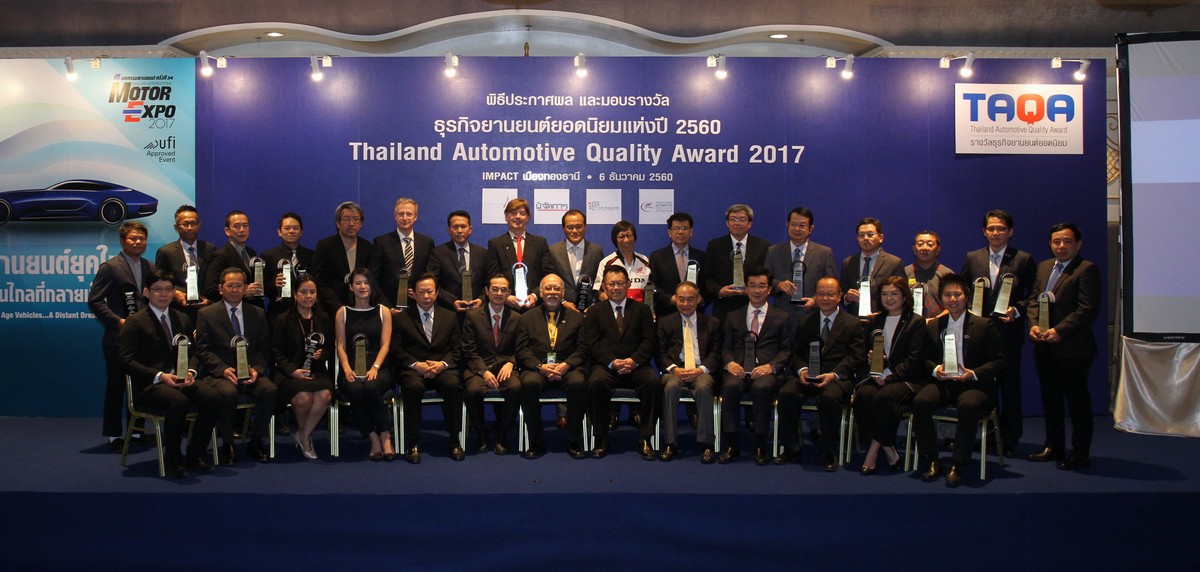 จากความมุ่งมั่นในการสร้าง “ยนตรกรรมที่ดียิ่งกว่า” (Ever-better Cars) การเน้นย้ำคุณภาพการผลิตให้ได้มาตรฐานระดับโลก รวมถึงการปรับปรุงด้านการขายและการบริการหลังการขาย เพื่อให้บรรลุเป้าหมายในการสร้างความพึงพอใจสูงสุดให้กับลูกค้า ควบคู่ไปกับ การดำเนินธุรกิจอย่างโปร่งใส ตั้งอยู่บนหลักธรรมาภิบาล พร้อมมุ่งมั่นในการร่วมพัฒนาสังคมไทยผ่านหลากหลายกิจกรรมเพื่อสังคมอย่างต่อเนื่อง บริษัท โตโยต้า มอเตอร์ ประเทศไทย จำกัด มีความภาคภูมิใจที่ได้รับการพิจารณาจากคณะกรรมการตัดสินรางวัลธุรกิจยานยนต์ยอดนิยมแห่งปี 2560 ให้ได้รับรางวัลถึง 11 รางวัล โดยเฉพาะอย่างยิ่ง รางวัล TAQA Platinum Excellence Award สำหรับผู้ประกอบการที่ได้รับรางวัลที่ 1 “ธุรกิจยานยนต์ยอดนิยม” ด้านบริการหลังการขาย ประเภทรถยนต์นั่งส่วนบุคคล เป็นระยะเวลา 10 ปีติดต่อกัน และ รางวัล TAQA Excellence Award สำหรับผู้ประกอบการที่ได้รับรางวัลที่ 1 “ธุรกิจยานยนต์ยอดนิยม” ด้านคุณภาพแรกใช้ผลิตภัณฑ์ ประเภทรถกระบะดัดแปลงอเนกประสงค์ โตโยต้า ฟอร์จูนเนอร์ และ ประเภทรถยนต์เพื่อการพาณิชย์ขนาด 1 ตัน แบบ 4 ประตู โตโยต้า ไฮลักซ์ รีโว่ เป็นระยะเวลา 5 ปีติดต่อกัน รวมไปถึงรางวัล “ธุรกิจยานยนต์ยอดนิยม” ด้านภาพลักษณ์ดีเด่น ประเภทธรรมาภิบาล และ ประเภทความรับผิดชอบต่อสังคม อันนำมาซึ่งความภาคภูมิใจในการคงความเป็นองค์กรที่มุ่งพัฒนาให้อุตสาหกรรมยานยนต์ไทยและสังคมไทยเกิดการพัฒนาอย่างยั่งยืน