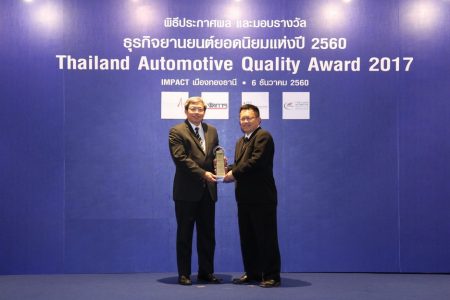 นายวุฒิกร สุริยะฉันทนานนท์ รองกรรมการผู้จัดการใหญ่ พร้อมด้วยคณะผู้บริหารระดับสูง บริษัท โตโยต้า มอเตอร์ ประเทศไทย จำกัด ร่วมรับรางวัล “ธุรกิจยานยนต์ยอดนิยมแห่งปี 2560” หรือ TAQA: Thailand Automotive Quality Award 2017 จาก ดร. สมชาย หาญหิรัญ รัฐมนตรีช่วยว่าการกระทรวงอุตสาหกรรม เมื่อวันที่ 6 ธันวาคม ที่ผ่านมา ณ อาคาร ชาเลนเจอร์ฮอลล์ อิมแพ็ค เมืองทองธานี โดยรางวัลที่ได้รับในครั้งนี้ มีดังนี้