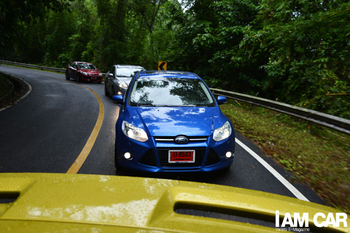 หลังจากที่นั่งฟังบรรยายมาครึ่งวันเต็มๆ เช้าวันรุ่งขึ้นก็เป็นการ Test Drive จริงๆ สักที โดยผมใช้ ALL-NEW Focus 2.0 L Ti-VCT GDi สปอร์ต พลัส ซึ่งเป็นตัว TOP สุดในรุ่น 4 ประตู เมื่อออกเดินทางความรู้สึกที่ผมมีต่อเบาะนั่งถือว่าเป็นเบาะกึ่งสปอร์ตที่กระชับร่างกายเราได้ดี แต่ที่ดีกว่านั้น คือ ความนิ่มนวลที่เบาะมีให้ ทัศนะวิสัยที่ชัดเจน ในส่วนของพวงมาลัยแบบ 4 ก้าน จับถนัดมือดี ปรับได้ 4 ทิศทาง พร้อมออฟชั่นบนพวงมาลัยมากมาย เช่น ควบคุมเครื่องเสียง ควบคุมระบบสั่งงานด้วยเสียง ควบคุมความเร็วอัตโนมัติ ควบคุมหน้าจอ แต่ก็ไม่ได้ก่อให้เกิดความรำคานในการขับขี่ ในช่วงแรกที่ผมขับยังไม่ได้ทดสอบสมรรถนะของรถเท่าไรนัก มัวแต่มุ่งเน้นไปที่ระบบ “SYNC” มากกว่า เพราะต้องบอกว่า กว่าที่ผมจะสั่งงานได้อย่างคล่องแคล่ว ก็ใช้เวลาไปเกือบ 15 นาทีแล้ว เพราะบางทีเราต้องใช้คำพูดให้ถูกต้อง พูดให้เป็นจังหวะ แต่พอคุณคุยกับ “SYNC” รู้เรื่องผมรับรองว่าเป็นอีกระบบที่ใช้งานไม่ยากเลยครับ