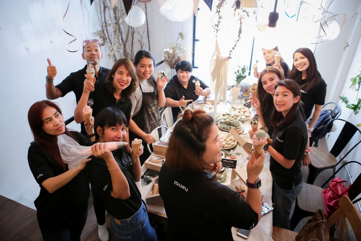 เริ่มต้นสตาร์ทวันดีๆ โดยเริ่มต้นจากบริษัท ตรีเพชรอีซูซุเซลส์ จำกัด ถนนวิภาวดีรังสิต สู่จุดหมายแรกที่ ร้าน “แดนดิไลอ้อน คาเฟ่ แอนด์ ปิกนิก” (Dandelion Café and Picnic) คาเฟ่เล็กๆ ในบรรยากาศอบอุ่น ตั้งอยู่ระหว่างซอยสุขุมวิท 49 กับ 51 ภายในร้านถูกตกแต่งสวยงามเป็นพิเศษด้วยโทนสีน้ำตาลทองสุดเอ็กซ์คลูซีฟ เพื่อต้อนรับคณะสื่อมวลชนที่จะมาร่วมจิบน้ำชายามบ่าย และเวิร์คช็อปแต่งหน้าขนม โดย“คุณไบรท์-ณหัย ศิริกันตราภรณ์” เจ้าของร้านคนสวยจัดเตรียมมาให้ในวันนี้ มาในรูปแบบ “Ice-cream Cone Cup Cake” หรือคัพเค้กที่อยู่ในโคนไอศกรีม พร้อมบัตเตอร์ครีม และน้ำตาลในรูปแบบต่างๆ ไว้สำหรับตกแต่งหน้าคัพเค้ก เริ่มต้นสำหรับมือใหม่หัดบีบครีมต้องลองซ้อมบีบกับกระดาษขาวก่อน เพื่อเช็คเนื้อสี และฝึกฝนจังหวะในการบีบจนสามารถขึ้นรูปทรงได้สวยงาม หลังจากนั้นก็ลงมือรังสรรค์หน้าคัพเค้ก พร้อมตกแต่งในสไตล์ของตัวเองออกมาเป็นผลงานชิ้นเอกกันอย่างสนุกสนาน งานนี้บอกเลยว่าฝีมือของแต่ละคนนั้นไม่ธรรมดาเลยจริงๆ