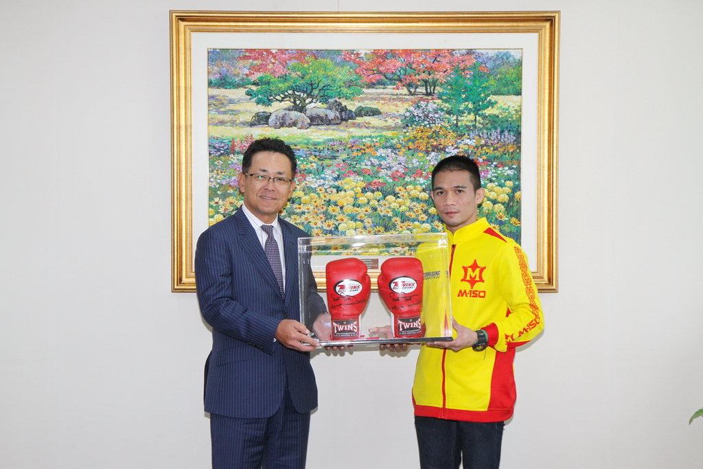 มร.มิจิโนบุ ซึงาตะ เจ้าหน้าที่บริหาร บริษัท โตโยต้า มอเตอร์ คอร์ปอเรชั่น และกรรมการผู้จัดการใหญ่ บริษัท โตโยต้า มอเตอร์ ประเทศไทย จำกัด ส่งมอบรถ “โตโยต้า ฟอร์จูนเนอร์ รุ่น 2.8 TRD Sportivo 4WD AT Black Top” สีขาว แก่ “เจ้าแหลม” ศรีสะเกษ นครหลวงโปรโมชั่น แชมป์โลกชาวไทยรุ่นซูเปอร์ฟลายเวต ของสภามวยโลก ในโอกาสที่สามารถป้องกันแชมป์จากผู้ท้าชิง “ฮวน ฟรานซิสโก เอสตราดา” ยอดนักชกรองอันดับ 1 ชาวเม็กซิกัน ที่ประเทศสหรัฐอเมริกา เมื่อเดือนกุมภาพันธ์ที่ผ่านมา เพื่อเป็นรางวัลแห่งความสำเร็จ พร้อมแสดงความขอบคุณที่ได้มอบความสุขและสร้างแรงบันดาลใจให้กับคนไทย ตลอดจนสนับสนุนให้กำลังใจแก่นักกีฬาที่ทุ่มเท อุทิศแรงกายแรงใจ สร้างผลงานและสร้างชื่อเสียงให้กับประเทศ ซึ่งในโอกาสนี้ ศรีสะเกษ นครหลวงโปรโมชั่น ได้กล่าวคำขอบคุณ พร้อมมอบของที่ระลึกให้กับ มร.มิจิโนบุ ซึงาตะ กรรมการผู้จัดการใหญ่ และ นายวุฒิกร สุริยะฉันทนานนท์ รองกรรมการผู้จัดการใหญ่ บริษัท โตโยต้า มอเตอร์ ประเทศไทย จำกัด ณ ออลซีซั่น เพลส ถนนวิทยุ เมื่อวันที่ 26 มีนาคม 2561