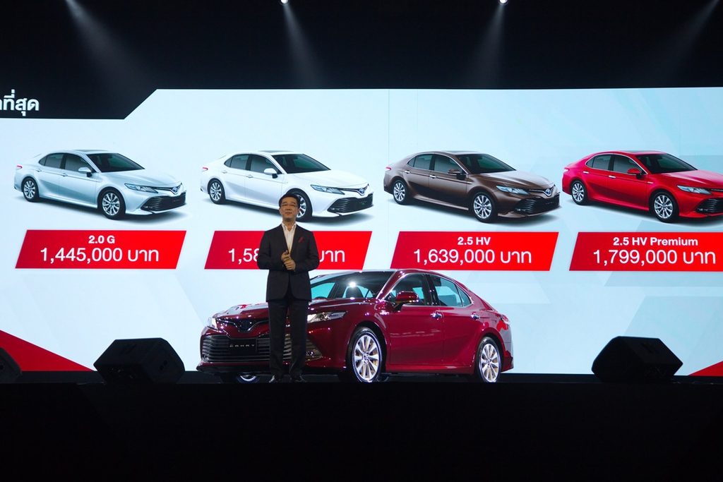 “ตัวแทนจำหน่ายโตโยต้าทั่วประเทศ พร้อมให้การดูแลลูกค้าทุกท่าน และจะมอบความพึงพอใจ ความภาคภูมิใจในการเป็นเจ้าของ รวมไปถึงความรู้สึกสบายใจตลอดระยะเวลาที่ครอบครองรถรุ่นนี้ สุดท้ายนี้ ผมขอขอบคุณรัฐบาลไทย ที่ให้การสนับสนุนการส่งเสริมใช้พลังงานทางเลือกอย่างต่อเนื่อง ทำให้คนไทยสามารถเป็นเจ้าของรถยนต์ที่มีเทคโนโลยีขั้นสูงอย่าง คัมรีใหม่ ได้ในราคาที่เหมาะสม และผมยินดีที่จะแจ้งให้ทุกท่านทราบถึงความคืบหน้าในการผลิตแบตเตอรีภายในประเทศ เราจะเริ่มต้นการผลิตในกลางปี 2562 ที่โรงงานเกตุเวย์ จังหวัดฉะเชิงเทรา เพื่อตอบสนองนโยบายของภาครัฐ” มร.มิจิโนบุ ซึงาตะ กล่าวในที่สุด