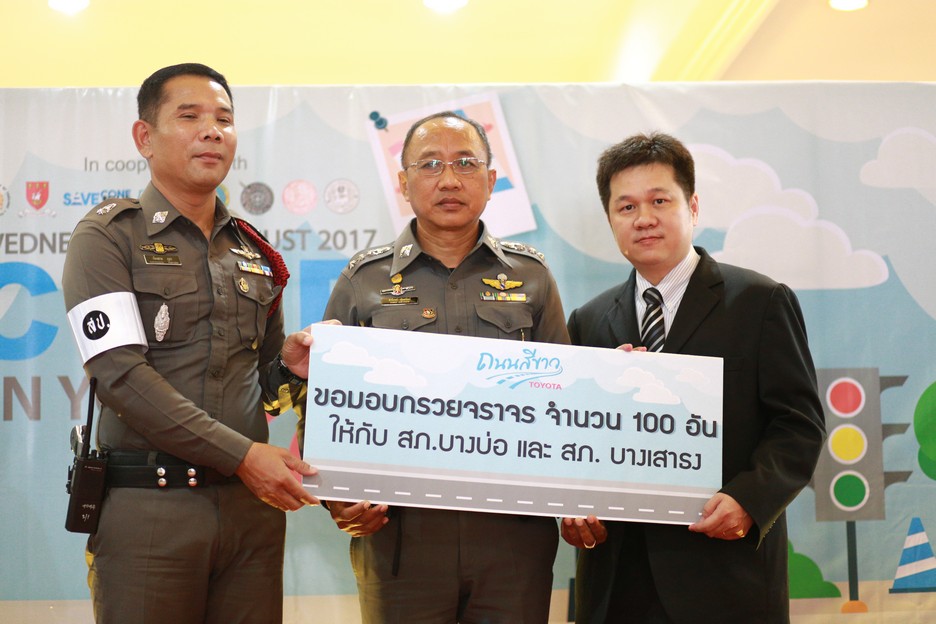 รวมถึงการประชาสัมพันธ์ต่างๆเพื่อส่งเสริมให้ผู้ขับขี่คำนึงถึงความปลอดภัยในการใช้รถใช้ถนน ทั้งทางสื่อออนไลน์ และทางสื่อกลางแจ้งโดยรอบบริเวณมหาวิทยาลัย ซึ่งได้รับการสนับสนุนเป็นอย่างดีจาก องค์การบริหารส่วนตำบลบางบ่อ องค์การบริหารส่วนตำบลบางเสาธง และกรมทางหลวงชนบทนอกจากนั้น โตโยต้ายังได้สนับสนุนเงินเป็นจำนวน 40,000 บาท แก่ สถานีตำรวจภูธรบางเสาธง และสถานีตำรวจภูธรบางบ่อ สำหรับการจัดซื้อกรวยจราจรเพื่อความปลอดภัยมาติดตั้ง ณ บริเวณโดยรอบมหาวิทยาลัยอีกด้วย
