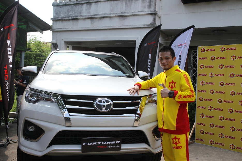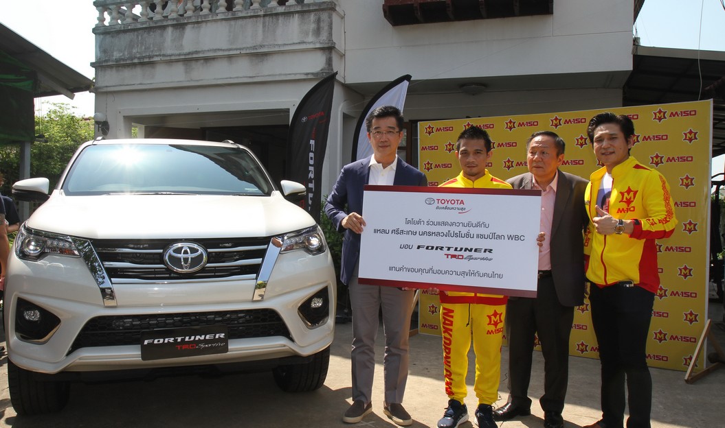 นายวุฒิกร สุริยะฉันทนานนท์ รองกรรมการผู้จัดใหญ่ บริษัท โตโยต้า มอเตอร์ ประเทศไทย จำกัด ร่วมแสดงความยินดีกับ “เจ้าแหลม” ศรีสะเกษ นครหลวงโปรโมชั่น แชมป์โลกรุ่นซูเปอร์ฟลายเวต น้ำหนัก 115 ปอนด์ ของสภามวยโลก ในโอกาสที่สามารถป้องกันแชมป์จากผู้ท้าชิง “ฮวน ฟรานซิสโก เอสตราดา” นักชกรองอันดับ 1 ชาวเม็กซิกัน ที่ เดอะ ฟอรั่ม อิงเกิลวูด รัฐแคลิฟอร์เนีย ประเทศสหรัฐอเมริกา และได้มอบรถยนต์ในฝัน “โตโยต้า ฟอร์จูนเนอร์” รุ่น 2.8 TRD Sportivo 4WD AT Black Top ให้กับแชมป์โลกชาวไทย ณ ค่ายมวยนครหลวงโปรโมชั่น ในวันที่ 3 มีนาคม 2561 เพื่อแสดงความขอบคุณยอดนักมวยที่ได้มอบความสุขให้คนไทย เป็นแบบอย่างที่ดีและเป็นการสร้างแรงบันดาลใจให้กับคนไทย ผ่านความมุ่งมั่นเพื่อทำความฝันของตนเองให้เป็นจริง ด้วยปณิธานอันแน่วแน่สู่การเป็นนักมวยสากลอาชีพ จนประสบความสำเร็จและได้รับการยอมรับในระดับสากล