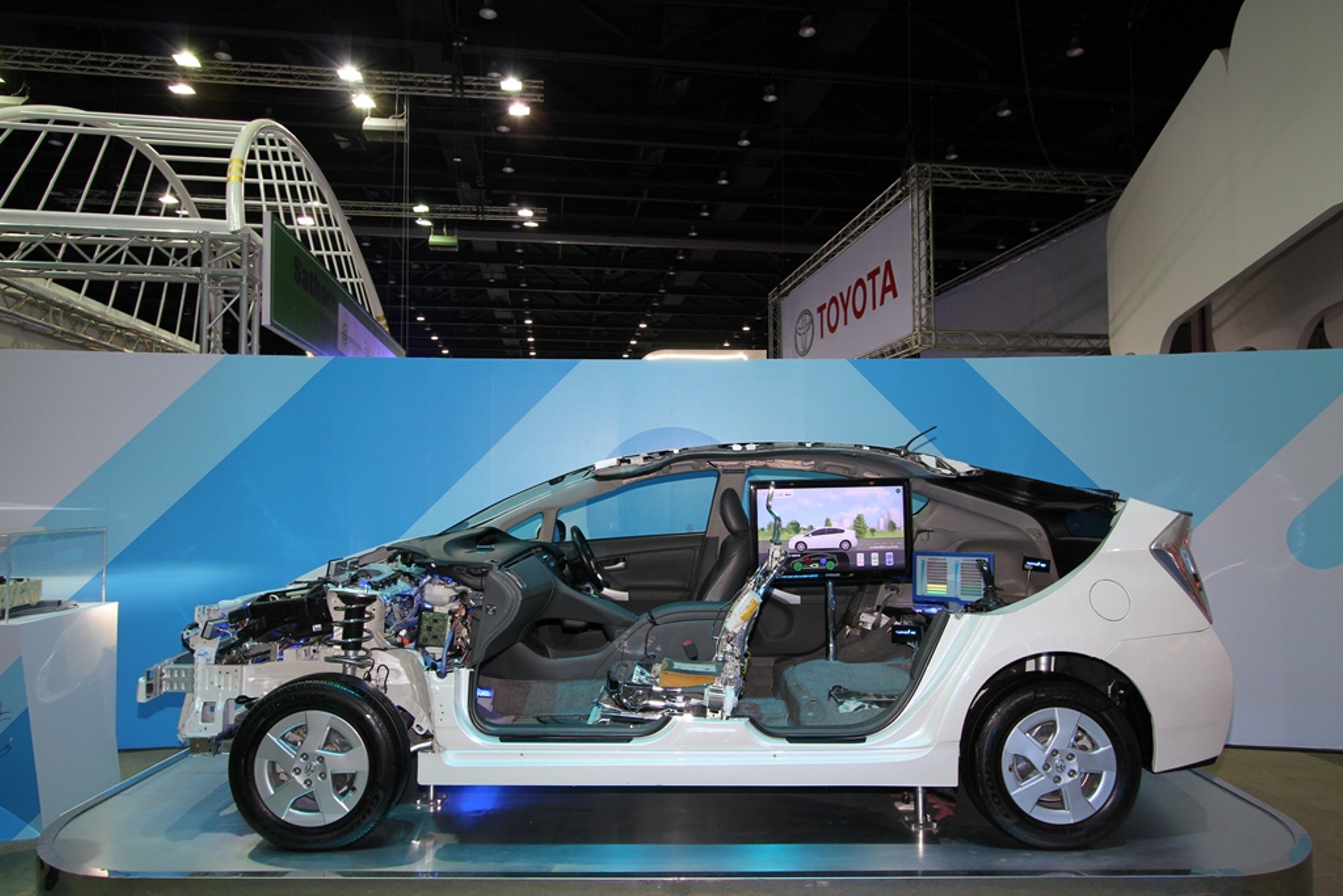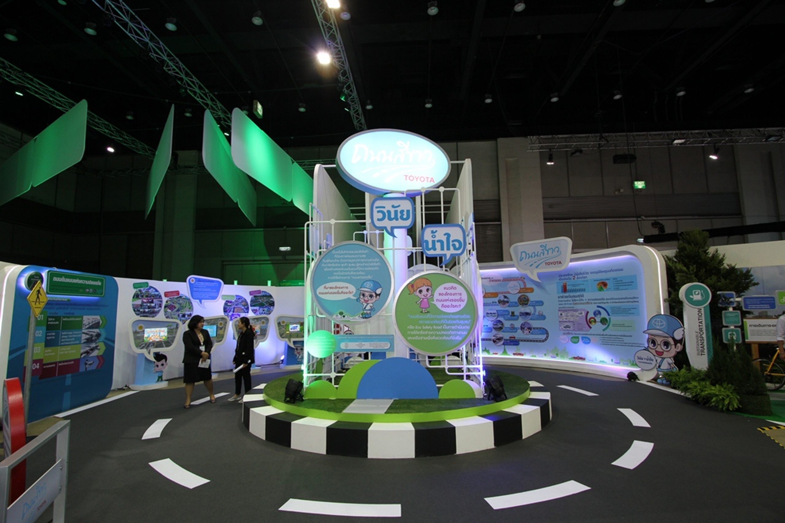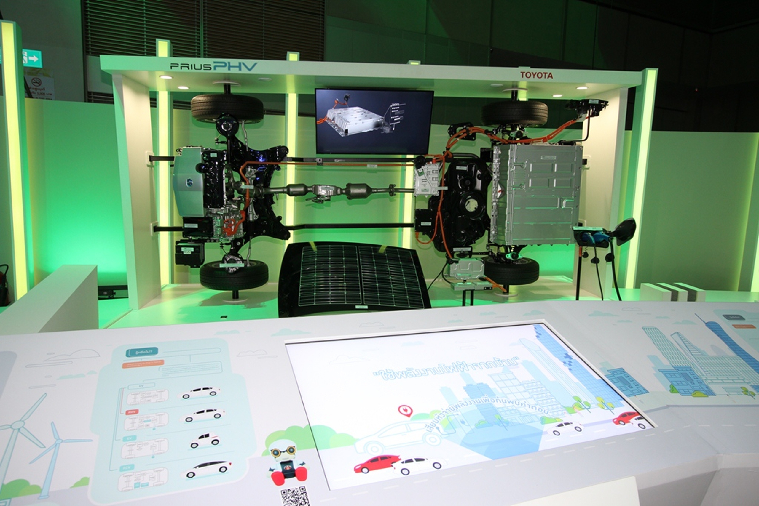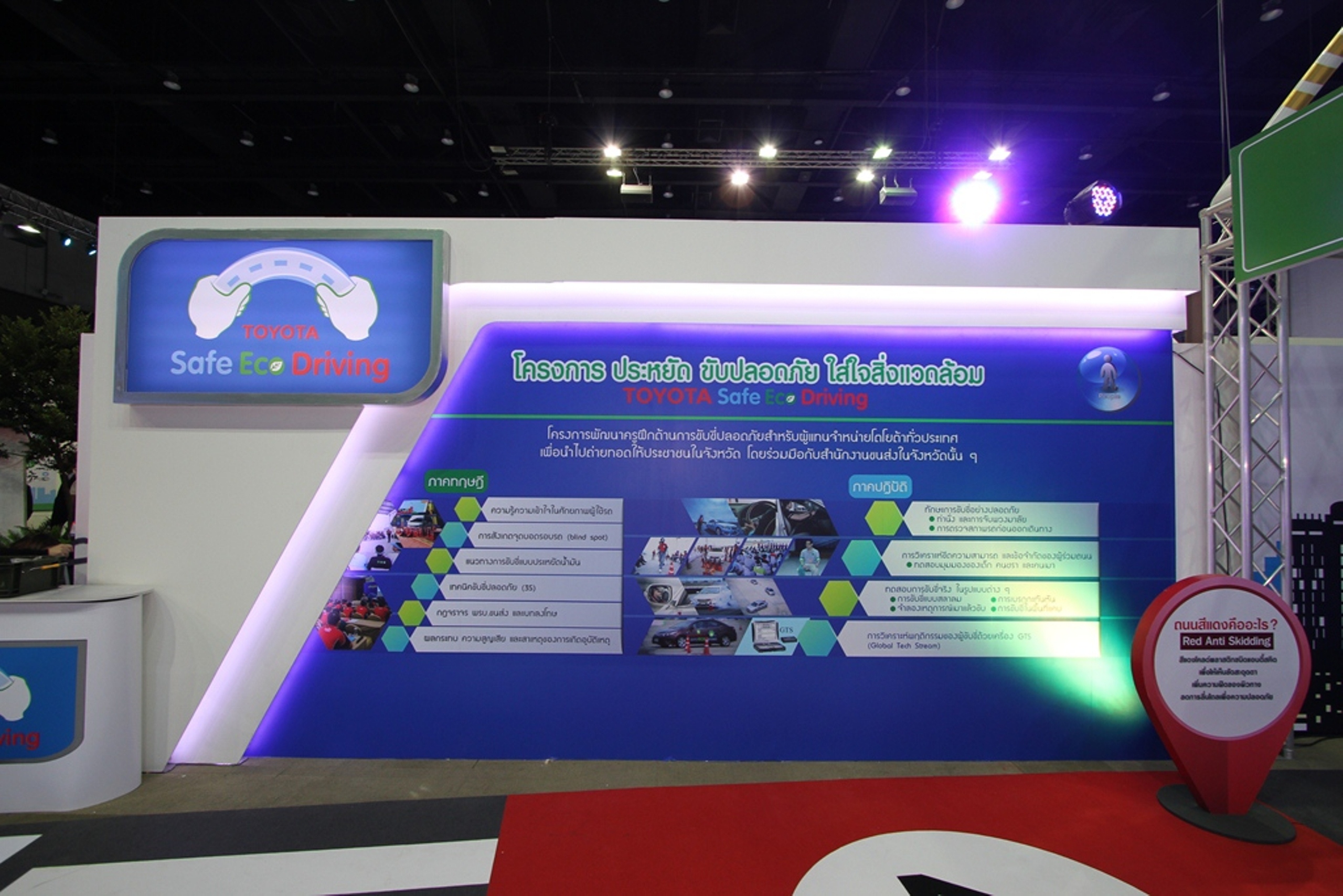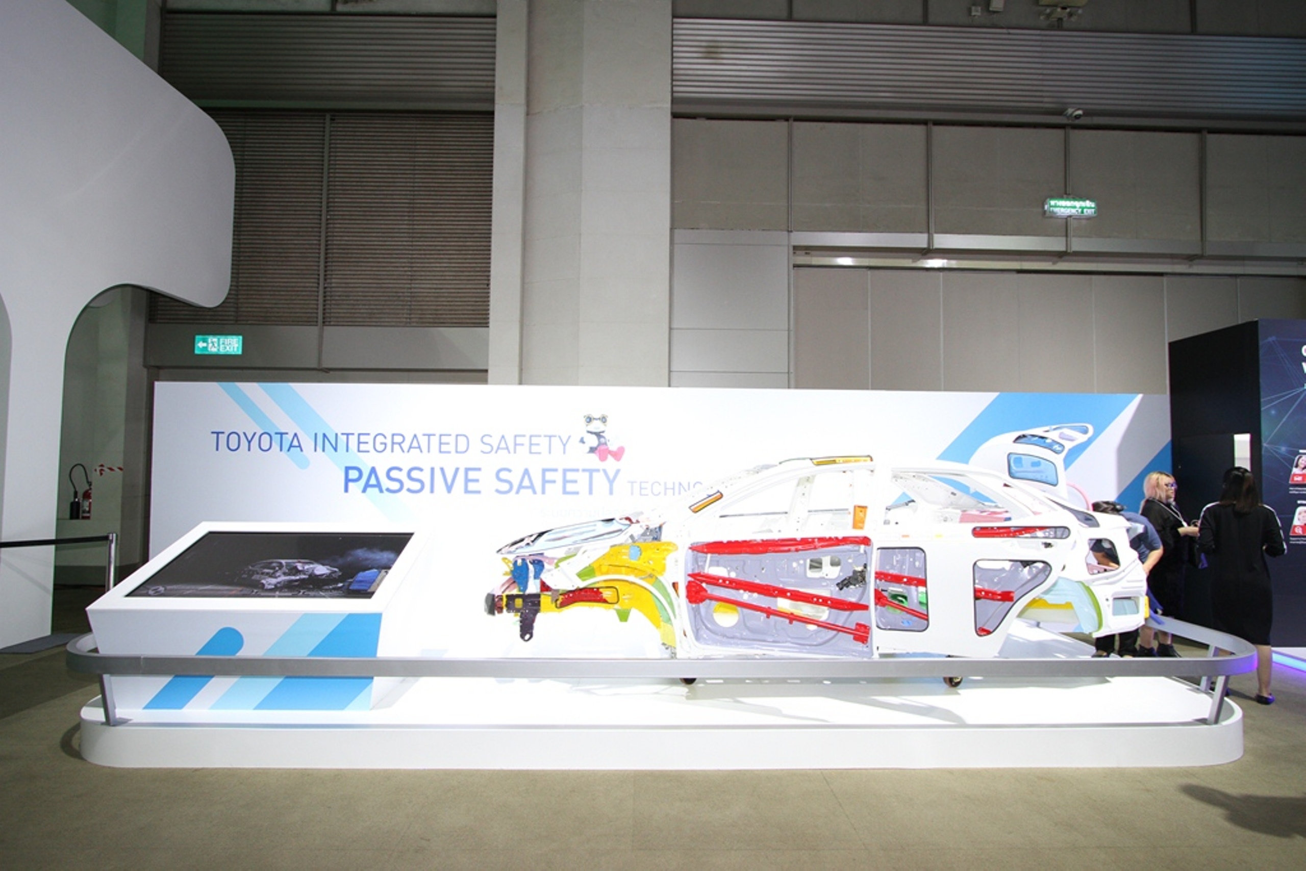 1. นำเสนอนวัตกรรมยานยนต์ของโตโยต้า ผ่านเทคโนโลยีการพัฒนาผลิตภัณฑ์ในแต่ละยุคสมัย ตั้งแต่ระบบเครื่องยนต์สันดาปภายในที่ใช้พลังงานจากฟอสซิล สู่เครื่องยนต์ระบบไฮบริดที่ใช้พลังงานเชื้อเพลิงและไฟฟ้า ต่อเนื่องไปสู่เทคโนโลยีแห่งอนาคตที่ใช้พลังงานจากเซลล์เชื้อเพลิงไฮโดรเจน ซึ่งเป็นเทคโนโลยีขั้นสูงสุดที่เปี่ยมด้วยประสิทธิภาพ และเป็นมิตรต่อสิ่งแวดล้อม รวมถึงเทคโนโลยีด้านความปลอดภัยอันล้ำสมัย เพื่อให้ผู้ขับขี่และผู้ใช้รถใช้ถนนทั่วไปปลอดภัย มั่นใจ ลดโอกาส และความสูญเสียในการเกิดอุบัติเหตุทางจราจรได้อย่างมีประสิทธิภาพ