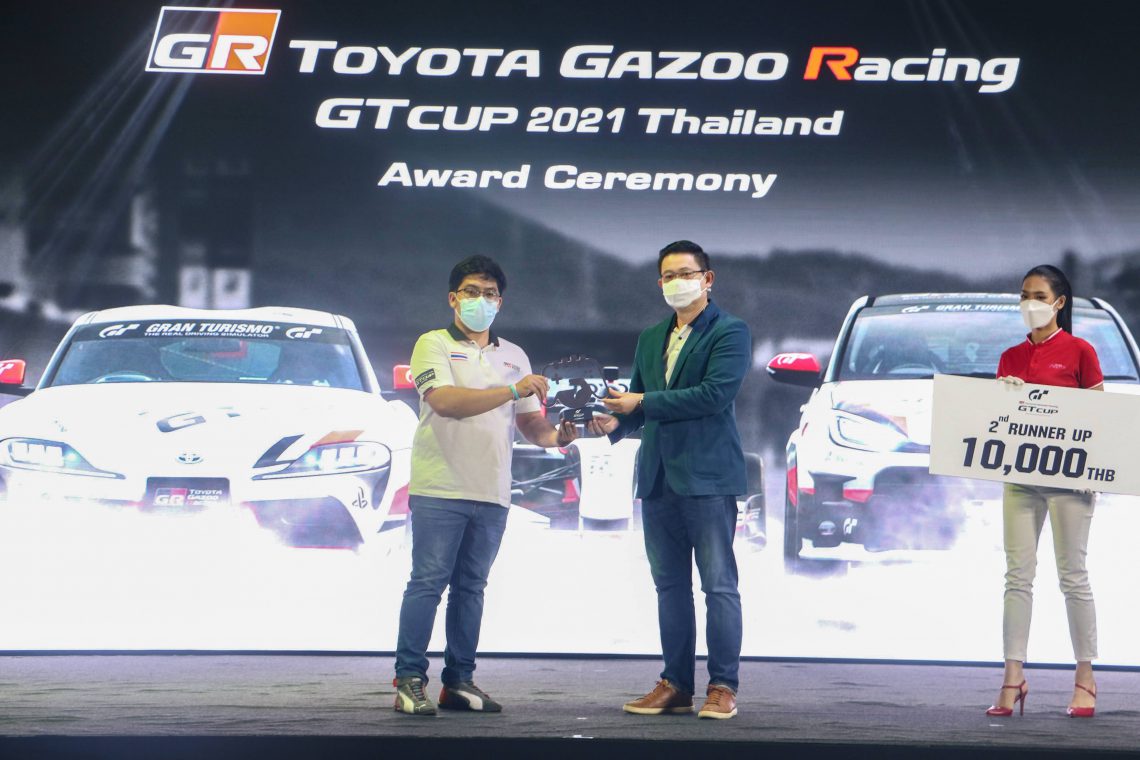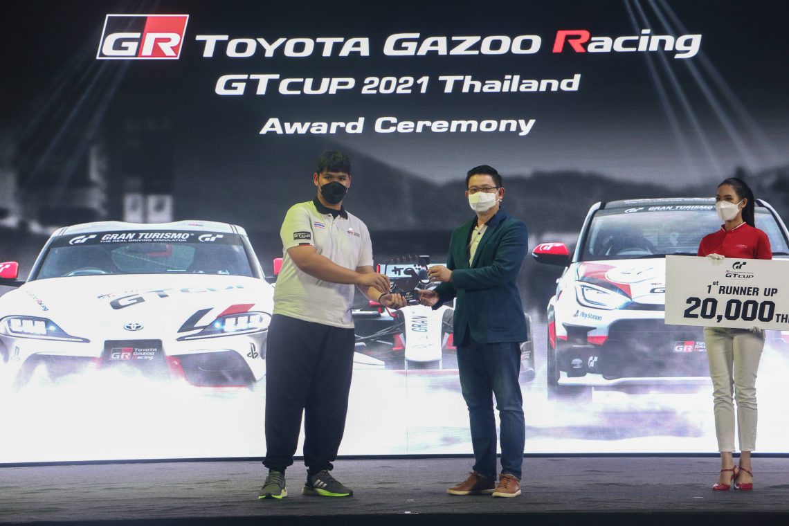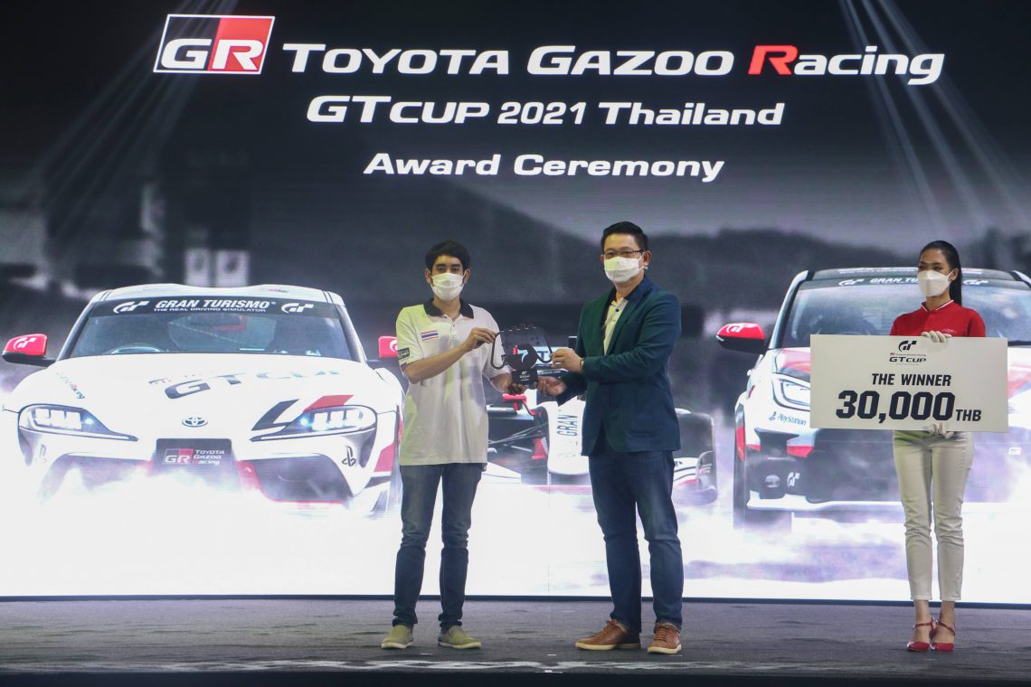 “ในวันนี้โตโยต้าได้ต่อยอดความสำเร็จสู่วงการ e-Motorsports เพื่อตอบรับกับการเปลี่ยนแปลงของเทรนด์โลก พร้อมเปิดโอกาสให้คนรุ่นใหม่ ผู้มีความชื่นชอบในกีฬาแข่งรถ ได้สัมผัสประสบการณ์อันตื่นเต้น เร้าใจ กับความท้าทายใหม่ๆ ในโลกเสมือนจริง ภายใต้กิจกรรม e-Motorsports ของ ผ่านการแข่งขัน Toyota Gazoo Racing GT Cup 2021 ในเกม Gran Turismo Sport บน Play Station 4 และ 5 ด้วยการทดสอบสมรรถนะ ความสมดุล และความคล่องตัวของรถ Toyota GR ในหลากหลายรุ่น อาทิ รถสปอร์ตในตำนาน Toyota GR Supra หรือ รถสปอร์ตสายพันธุ์แชมป์แรลลี่โลก Toyota GR Yaris จนสามารถหานักแข่งที่ทำคะแนนสะสมได้สูงสุด 3 คน เป็นตัวแทนประเทศไทย เข้าร่วมการแข่งขันระดับ Asia pacific ในเดือนตุลาคม พร้อมรับเงินรางวัลพิเศษ รวมมูลค่าทั้งสิ้นกว่า 60,000 บาท”