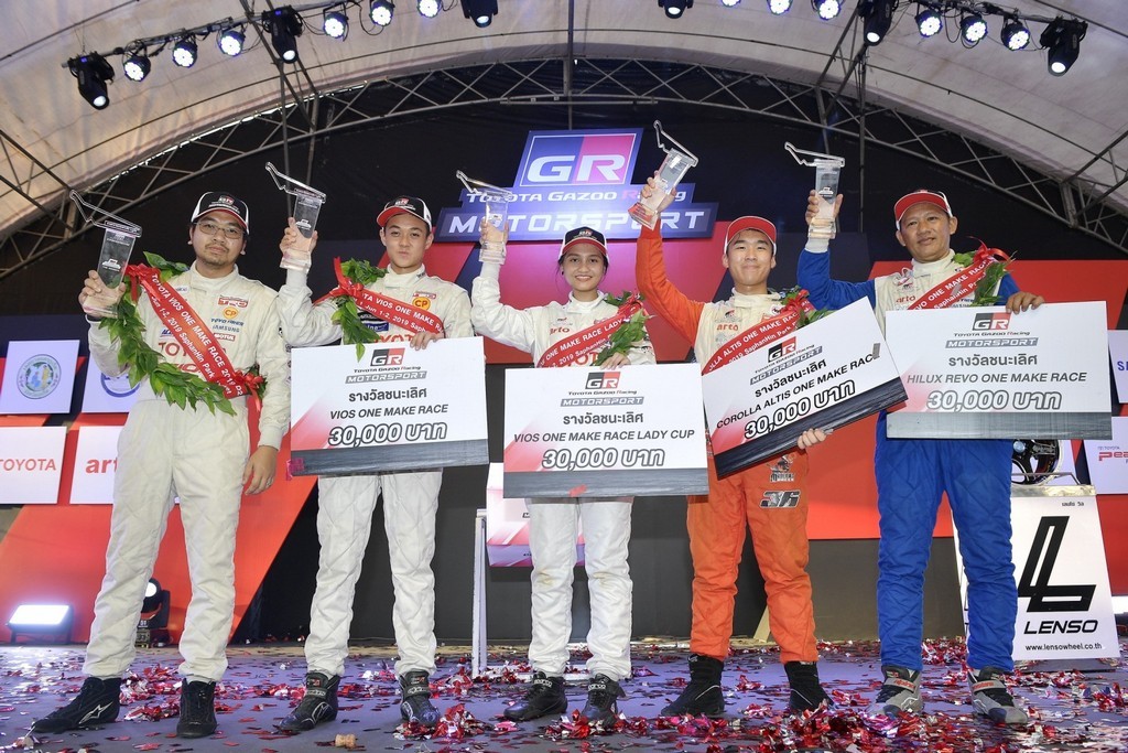 สนุกเร้าใจไปกับ “โคโรลล่า อัลติส วันเมคเรซ” ซึ่งแชมป์ตกเป็นของ “โชคชัย จารุนงคราญ” หมายเลข 36 จากทีม TDEX Motul Nexzter Racing Team คว้าแชมป์ไปครอง โดยมี “พุทธมนต์ ธนะพาสุข” หมายเลข 96 ตามมาในอันดับ 2 และอันดับที่ 3 ตกเป็นของ “กฤษฎิ์ วสุรัตน์” หมายเลข 69
