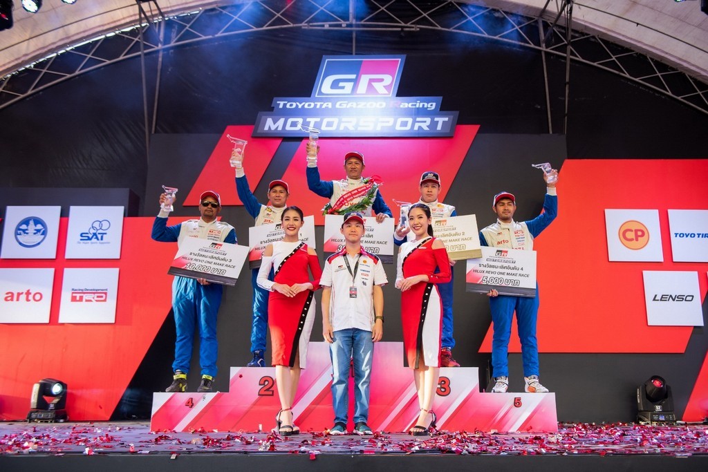 สำหรับรุ่นไฮไลท์ของการแข่งขันกับรถกระบะทางเรียบ “ไฮลักซ์ รีโว่ วันเมคเรซ” กับเครื่องยนต์ 2,400 ซีซี บทพิสูจน์ของกระบะสายพันธุ์แกร่ง กับช่วงล่างที่หนึบและสมรรถนะที่แรงสุดขีด เริ่มต้นการแข่งขันหลังจากสัญญาณไฟออกสตาร์ทดับลง เหล่านักแข่งก็ต่างเร่งเครื่องเพื่อแย่งชิงไลน์ในการเข้าโค้งแรก ด้วยความหนึบจากช่วงล่างของไฮลักซ์ รีโว่ ทำให้ทุกคนผ่านเข้าไลน์ได้อย่างยอดเยี่ยม โดยตำแหน่งแชมป์ตกเป็นของ “ปกรณ์ ธรรมโชติ” หมายเลข 44 ตามมาด้วย “สุวิทย์ คำจีน” หมายเลข 88 ในอันดับที่ 2 และ “ศุภชัย มั่นคง” หมายเลข 10 ในอันดับ 3