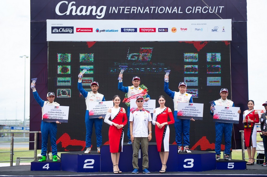 สำหรับรุ่นไฮไลท์ของการแข่งขันกับรถกระบะทางเรียบ “ไฮลักซ์ รีโว่ วันเมคเรซ” กับเครื่องยนต์ 2,400 ซีซี บทพิสูจน์ของกระบะสายพันธุ์แกร่ง กับช่วงล่างที่หนึบและสมรรถนะที่แรงสุดขีด ด้วยความหนึบจากช่วงล่างของไฮลักซ์ รีโว่ ทำให้ทุกคนผ่านเข้าไลน์ได้อย่างยอดเยี่ยม โดยตำแหน่งแชมป์ตกเป็นของ “โสภณ ภุมรินทร์” หมายเลข 36 ตามมาด้วย “ศุภชัย มั่นคง” หมายเลข 10 ในอันดับที่ 2 และ “เอกสิทธิ์ นามแสงผา” หมายเลข 2 ในอันดับ 3