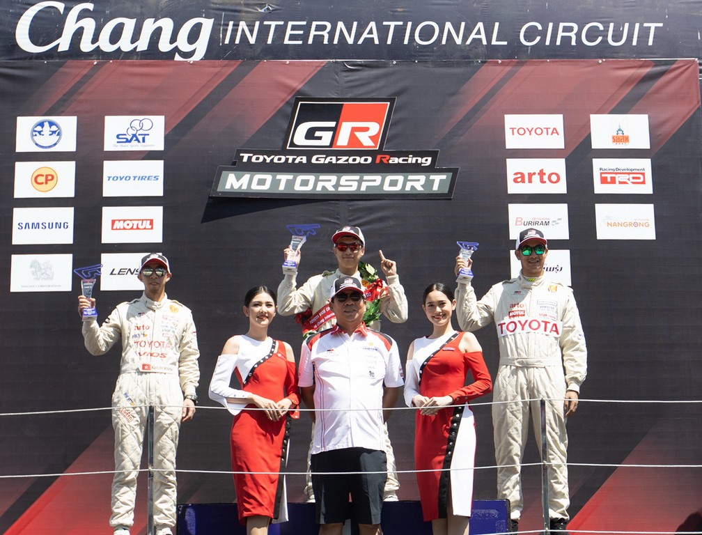 สนุกเร้าใจไปกับ “โคโรลล่า อัลติส วันเมคเรซ” ซึ่ง 3 อันดับแรกยังคงยึดตำแหน่งอย่างเหนียวแน่น โดยแชมป์ตกเป็นของ “กฤษฎิ์ วสุรัตน์” หมายเลข 69 จากทีม Singha-Muangthai-Pakelo by Tein Master Shop คว้าแชมป์ไปครอง โดยมี “ชัญญบุศย์ ธนะพาสุข” หมายเลข 95 จาก CFON Racing Team ตามมาในอันดับ 2 และอันดับที่ 3 ตกเป็นของ “Kentaro Chiba” หมายเลข 3 จาก Advics Aisin Racing Team