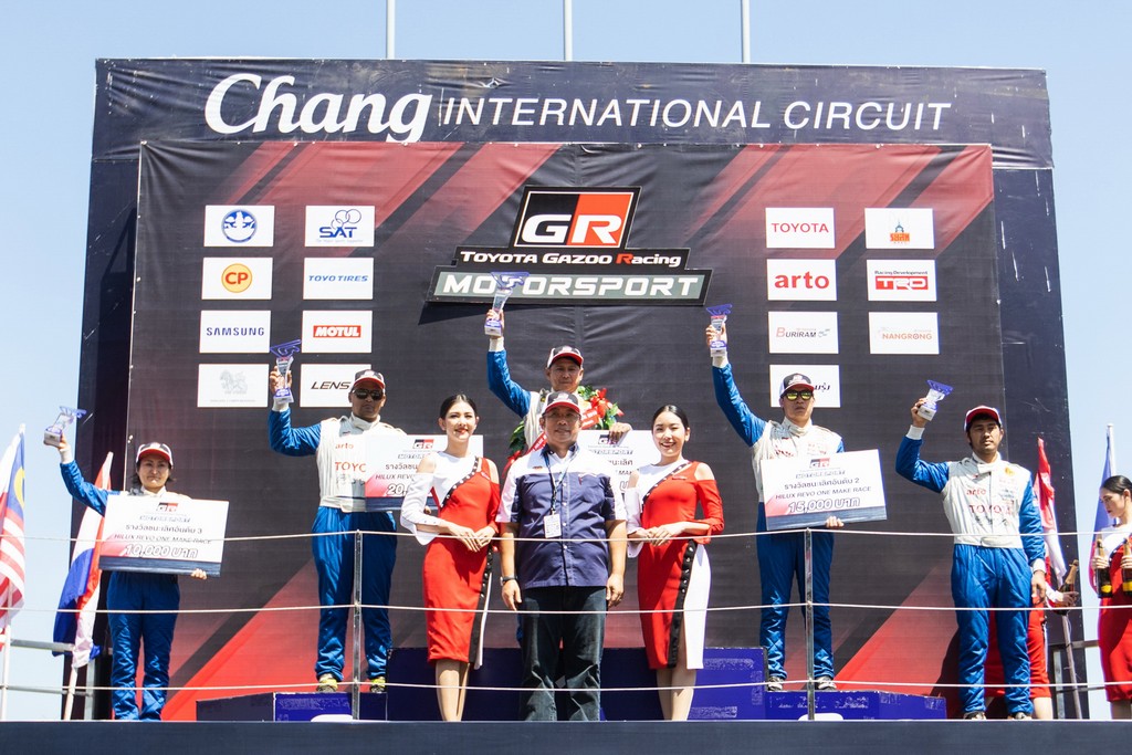 สำหรับรุ่นไฮไลท์ของการแข่งขันกับรถกระบะทางเรียบ “ไฮลักซ์ รีโว่ วันเมคเรซ” กับเครื่องยนต์ 2,400 ซีซี บทพิสูจน์ของกระบะสายพันธุ์แกร่ง กับช่วงล่างที่หนึบและสมรรถนะที่แรงสุดขีด ของไฮลักซ์ รีโว่ ทำให้ทุกคนผ่านเข้าเส้นชัยได้อย่างยอดเยี่ยม โดยตำแหน่งแชมป์ตกเป็นของ “โสภณ ภุมรินทร์” หมายเลข 36 ที่เบียดเข้าเส้นชัยอย่างสูสีกับอันดับ 2 “สุวิทย์ คำจีน” หมายเลข 88 และ “ชานนท์ รจนา” หมายเลข 39 ในอันดับ 3