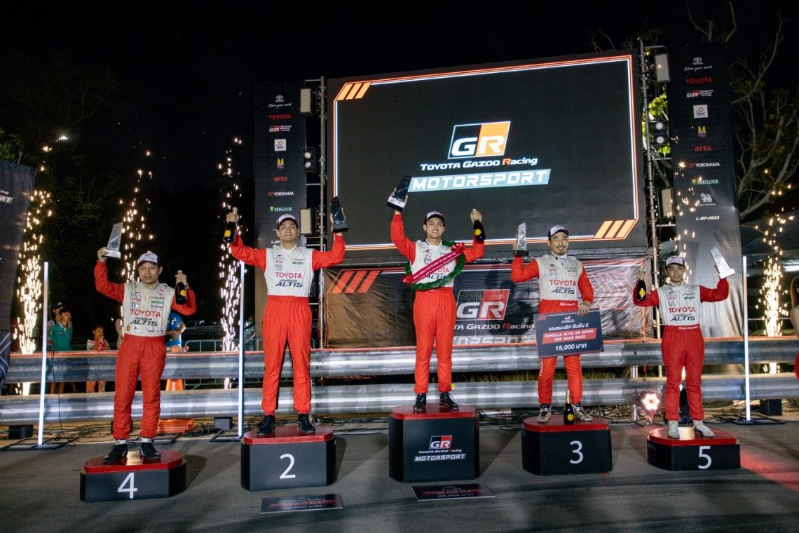 เร่งดีกรีความมันส์ด้วยเสียงแผดร้องก้องกังวาลจากปลายท่อไอเสียของเครื่องยนต์ Dual VVT-i 1,800 ซีซี ในรุ่น“Corolla ALTIS GR Sport One Make Race” บนโครงสร้างตัวถัง TNGA ซึ่งเป็นไฮไลท์ประจำการแข่งขัน แชมป์ประจำสนามตกเป็นของ “นรรัศมิ์ อภิวาท” ตามมาด้วย อันดับ 2 “ทยาพล คงสุวรรณ” อันดับ 3 เป็นของ “Krntaro Chiba” อันดับ 4 “ศักดิ์ชัย เยี่ยมวัฒนา” และ อันดับ 5 “อะกิ จิตรานุวัฒน์” บรรยาการการแข่งขันตลอด 22 รอบสนามเต็มไปด้วยความดุเดือด นับจากทะยานออกจากจุดสตาร์ท ด้วยความแม่นยำจากฝีมือการขับของนักแข่งโดยไร้อุบัติเหตุที่ทำให้รถ Safety Car ต้องออกมาทำหน้าที่ สะกดผู้ชมให้เกาะติดขอบสนามด้วยความเร้าใจ แสดงให้เห็นสมรรถนะ ความทนทาน สมศักดิ์ศรีรถซีดานยอดนิยมของคนไทย และคนทั่วโลก