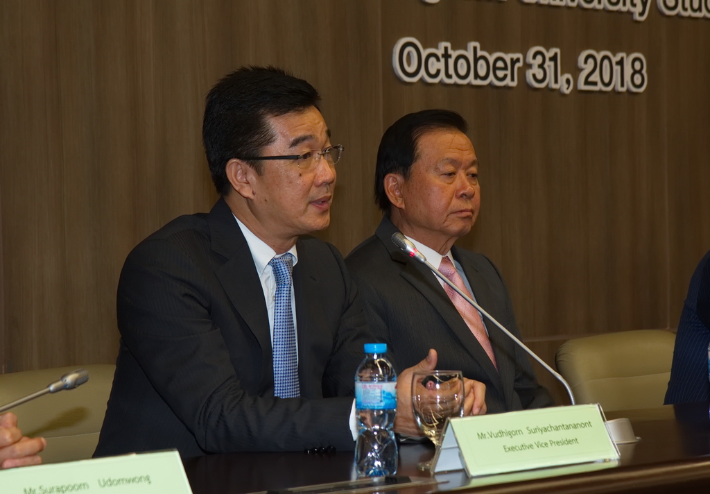 มร.มิจิโนบุ ซึงาตะ เจ้าหน้าที่บริหาร บริษัท โตโยต้า มอเตอร์ คอร์ปอเรชั่น ประเทศญี่ปุ่น และกรรมการผู้จัดการใหญ่ บริษัท โตโยต้า มอเตอร์ ประเทศไทย จำกัด พร้อมด้วย ศ.ดร.บัณฑิต เอื้ออาภรณ์ อธิการบดีจุฬาลงกรณ์มหาวิทยาลัย เข้าร่วมเป็นประธานในพิธีมอบทุนการศึกษาประจำปี พ.ศ.2561 แก่นิสิตจุฬาลงกรณ์มหาวิทยาลัย เพื่อสนับสนุนให้นิสิตที่เรียนดีแต่ขาดแคลนทุนทรัพย์ ได้รับโอกาสทางการศึกษาอย่างต่อเนื่อง พร้อมส่งเสริมให้นิสิตนำความรู้ที่ได้รับจากการศึกษา ไปพัฒนาสังคมไทยให้เติบโตอย่างยั่งยืน เมื่อวันที่ 31 ตุลาคม 2561 ณ อาคารจามจุรี 4 ห้องประชุม 202 จุฬาลงกรณ์มหาวิทยาลัย