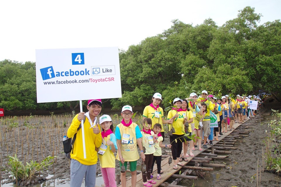 สำหรับกิจกรรมปลูกป่าชายเลนในครั้งนี้ ได้รับความร่วมมือจากอาสาสมัครกว่า 5,000 คน อันประกอบด้วย ตัวแทนจากบริษัทในเครือโตโยต้า กลุ่มพนักงานโตโยต้าและครอบครัว สมาชิกชมรมโตโยต้าจิตอาสา สมาชิกเครือข่าย Toyota CSR Facebook สมาชิก e-TOYOTACLUB ผู้แทนจำหน่ายโตโยต้า ผู้ผลิตชิ้นส่วน ตลอดจนตัวแทนจากหน่วยงานภาครัฐในจังหวัดสมุทรปราการ กองทัพบก และประชาชนทั่วไป ที่มาร่วมแรงร่วมใจปลูกพันธุ์ไม้ชายเลน กว่า 50,000 ต้น ประกอบด้วย ต้นโกงกาง แสมขาว และลำพู เพิ่มพื้นที่ป่าชายเลนครอบคลุมบริเวณกว่า 9 ไร่