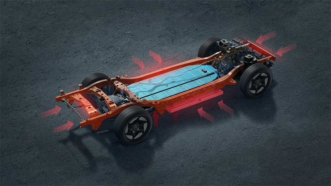 - ช่วยปกป้องแบตเตอรี่และชุดขับเคลื่อนไฟฟ้าด้วยแผ่นปิดเสริมความปลอดภัย ทั้งด้านหน้าและใต้ท้องรถ
